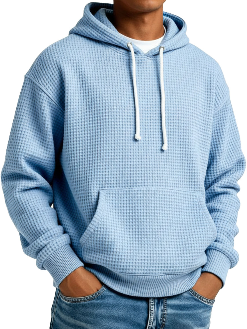 Men's Stylish Street-style Waffle Fabric Pocket Hooded Sweatshirt
