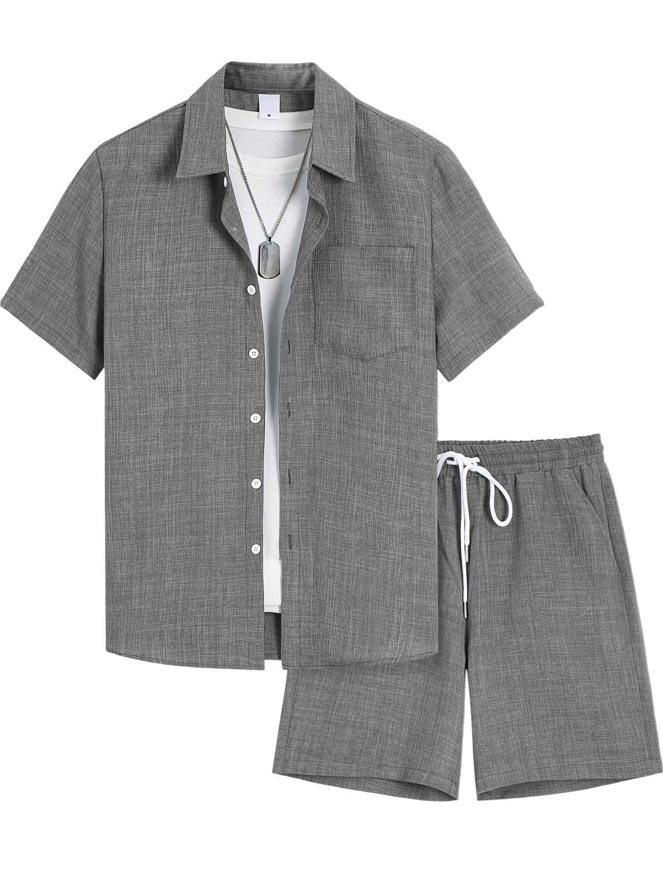 Men's Daily Wrinkled Texture Pocket Shirt Shorts Set