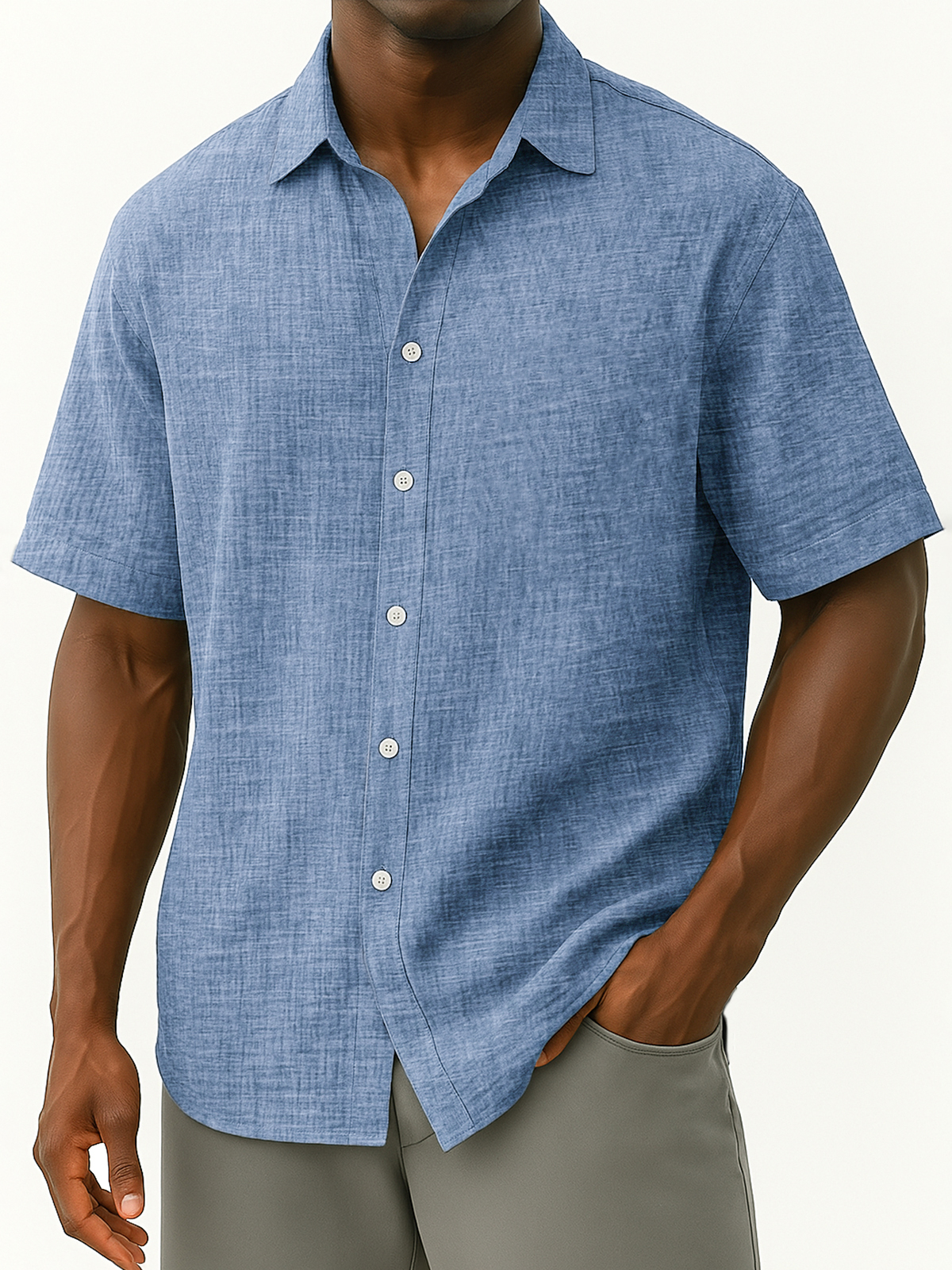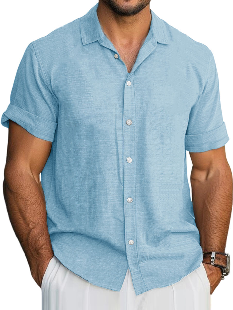 Men's Cotton Hawaiian Summer Comfortable Solid Color Short Sleeve Shirt