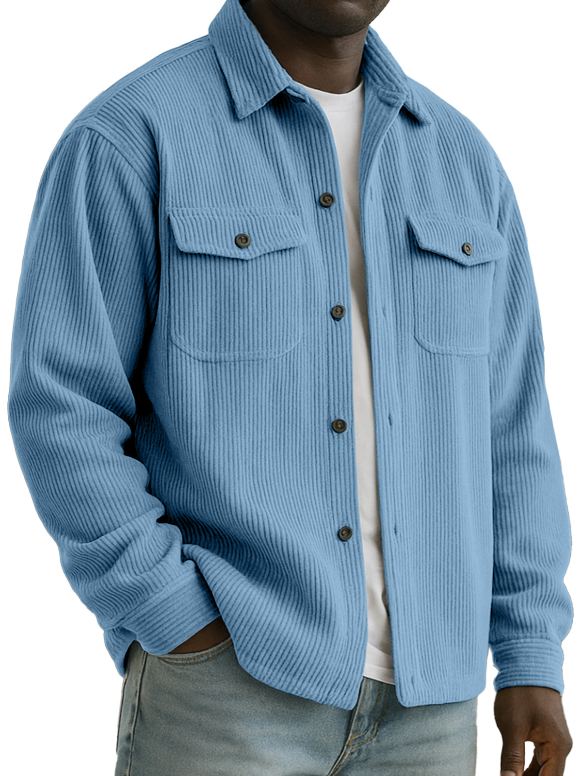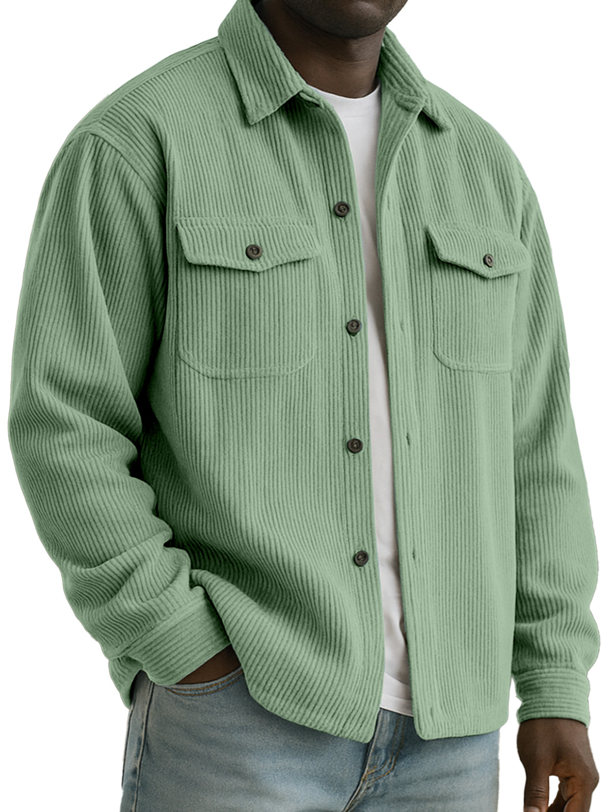 Men's Everyday Casual Corduroy Texture Double Pocket Lapel Long Sleeve Shirt