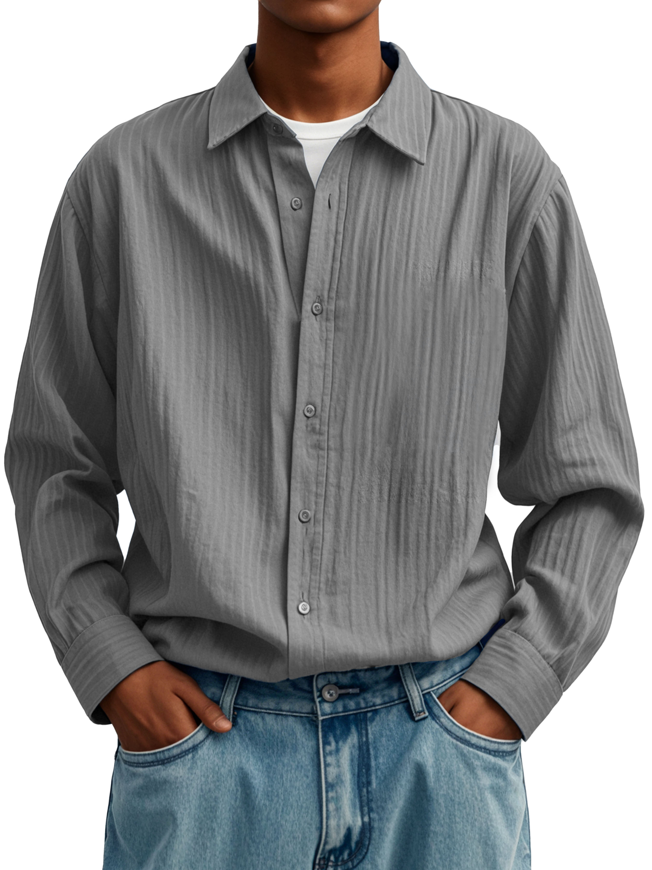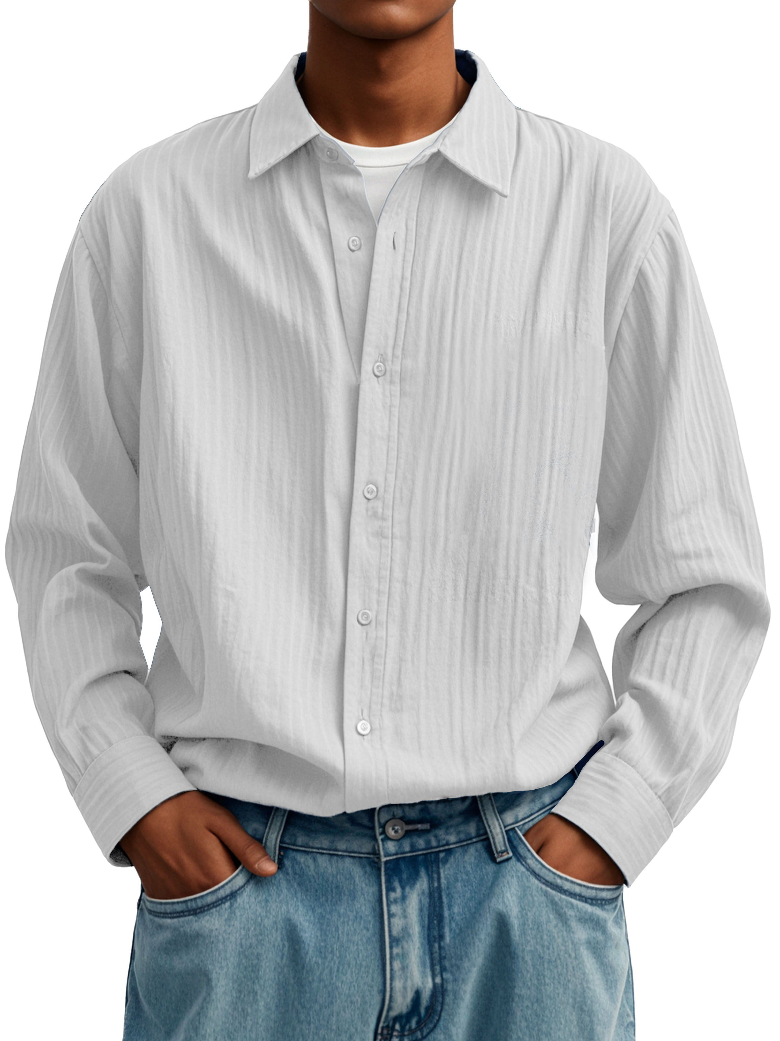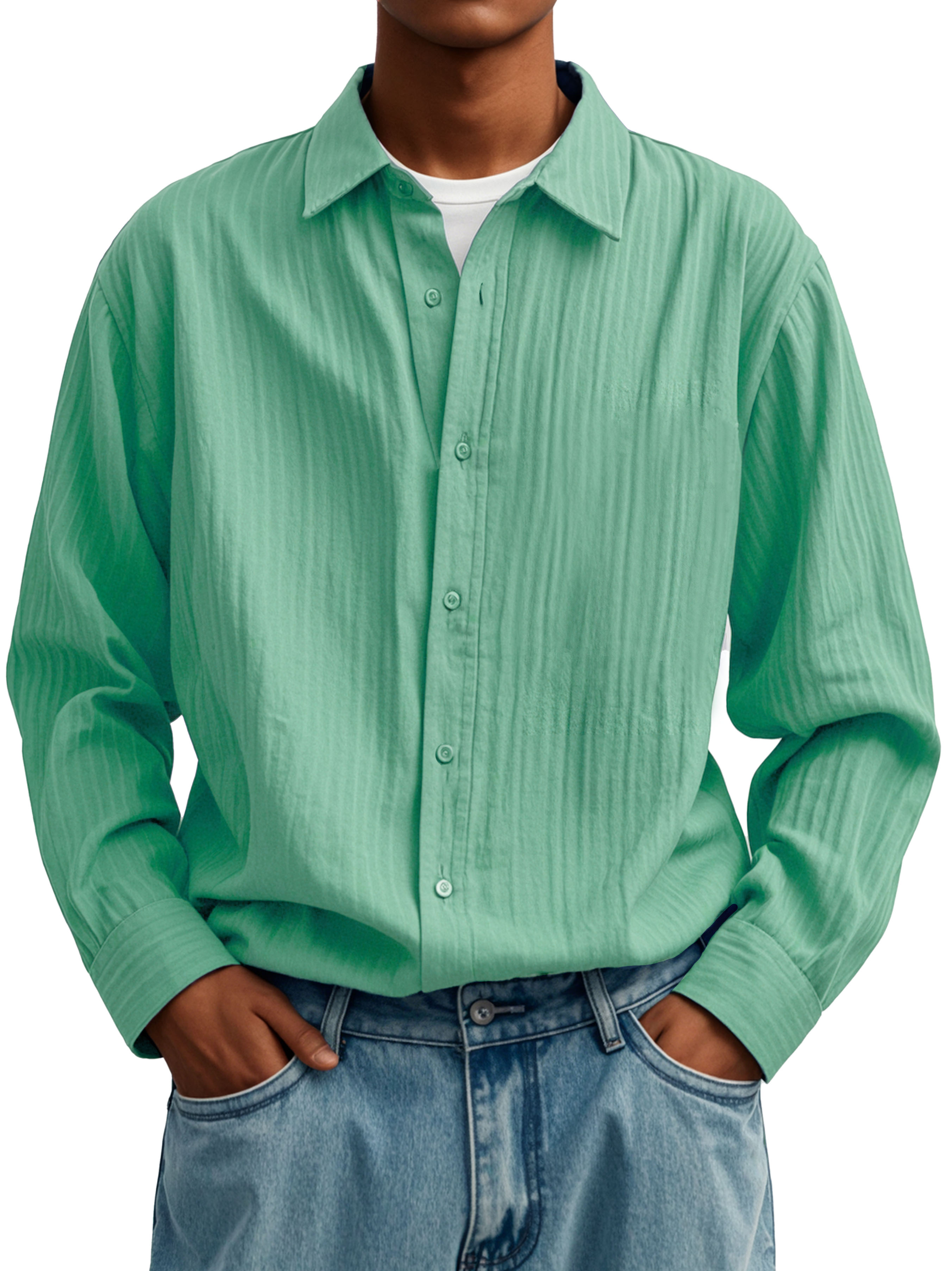 Herrenmode Lässiges Faltenstoff Langarmhemd