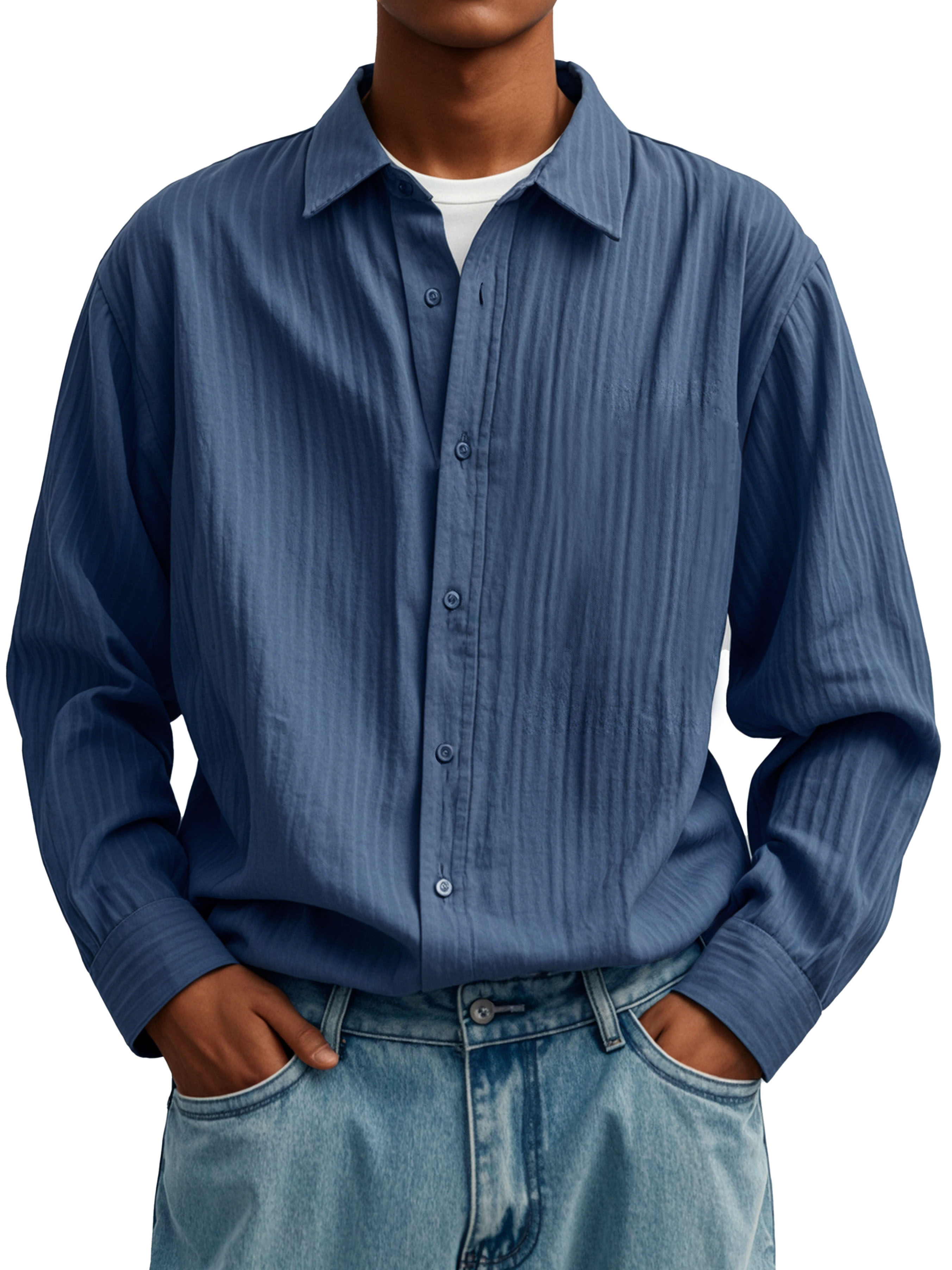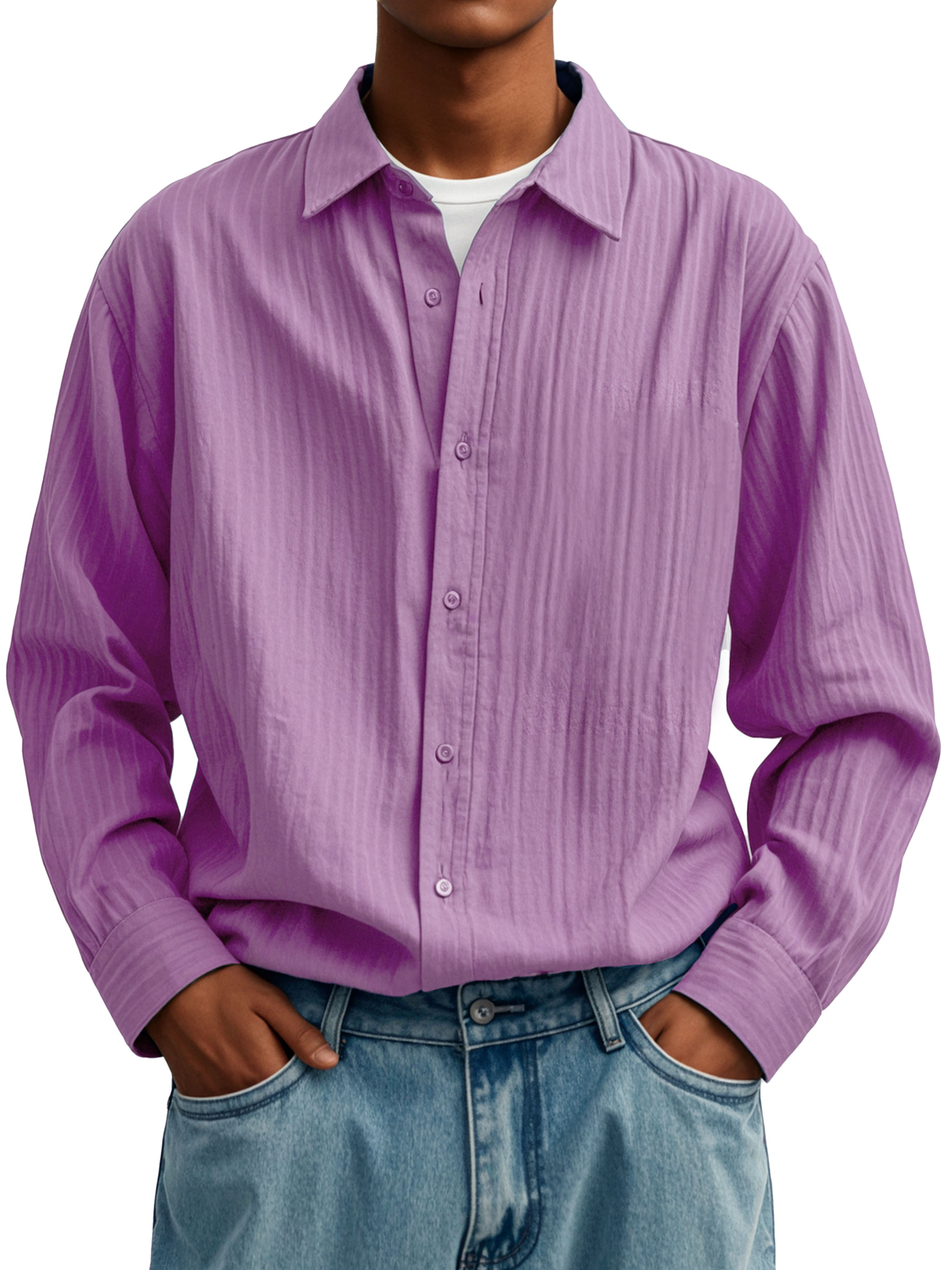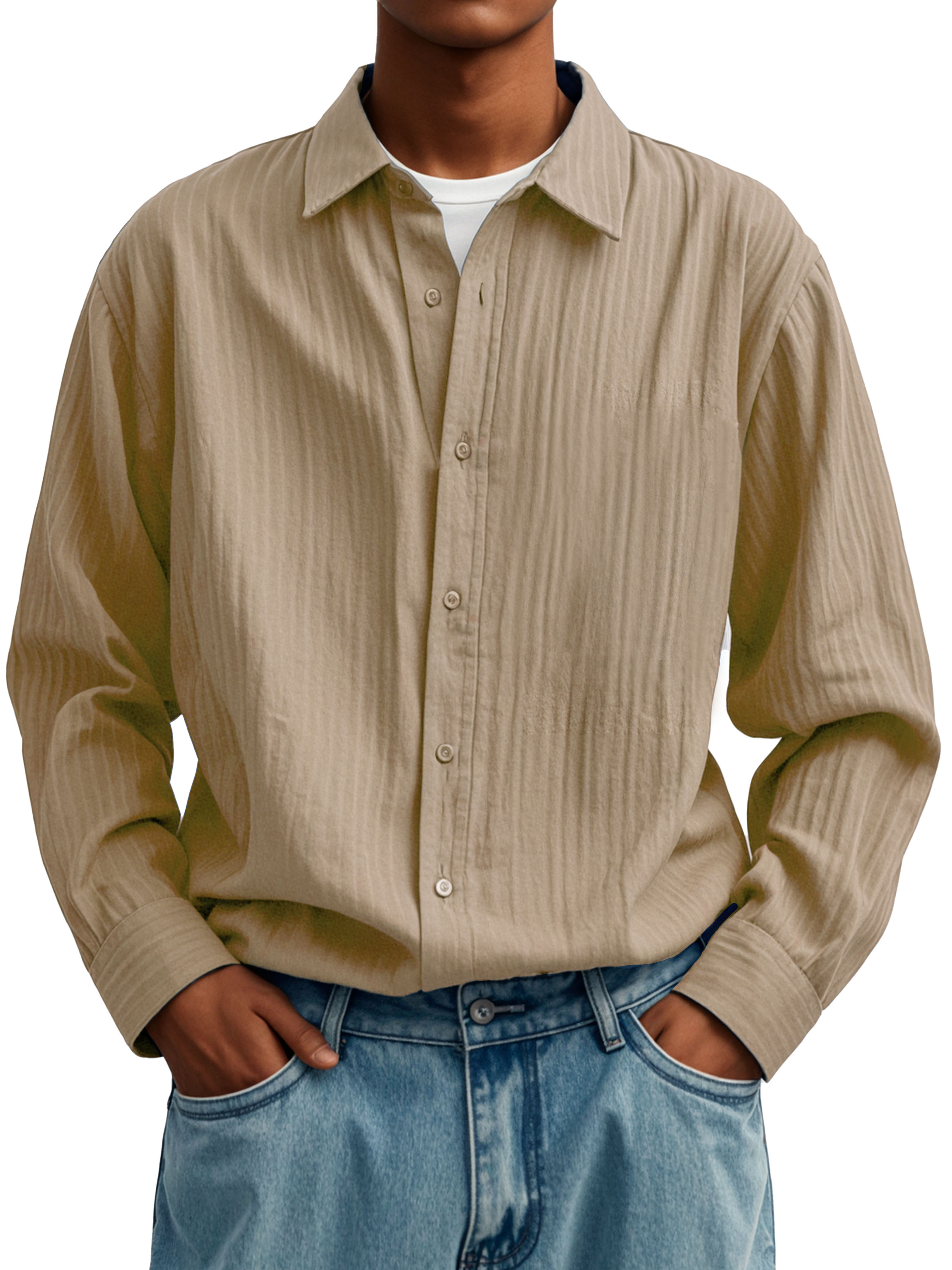 Herrenmode Lässiges Faltenstoff Langarmhemd
