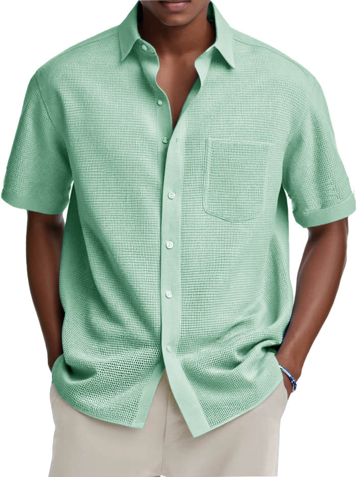 Herrenmode Lässiges Retro Waffelstoff Taschen Kurzarmhemd