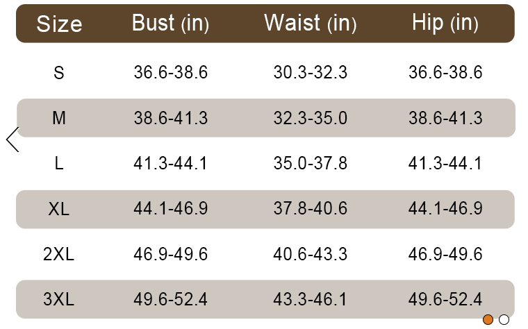 Größentabelle (US, Brustumfang):