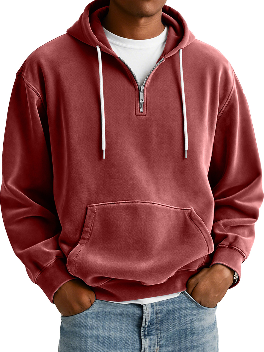 Herren Einfaches Wildleder Freizeit Reißverschluss Kapuzenpullover