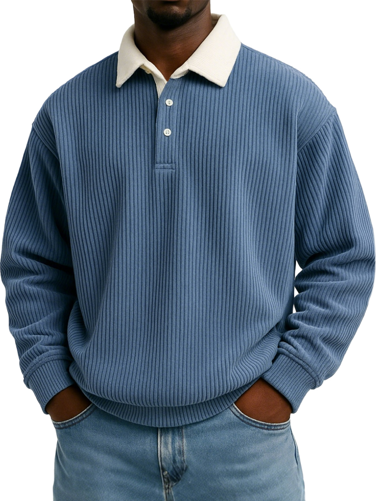 Herren Sweatshirt mit einfarbigem vertikalem Streifenmuster und Kontrastfarbe, langärmlig, mit Revers