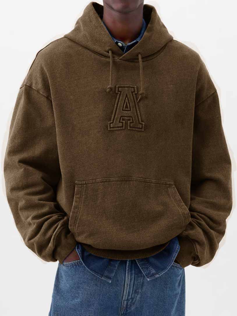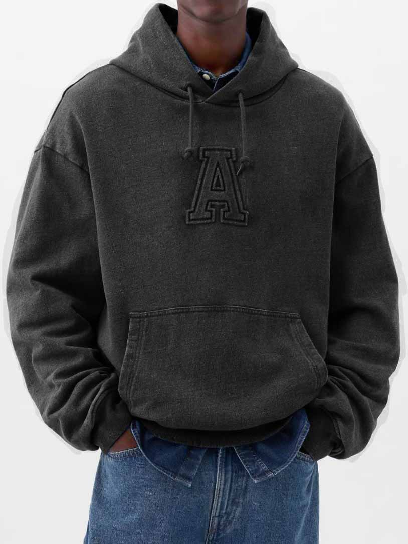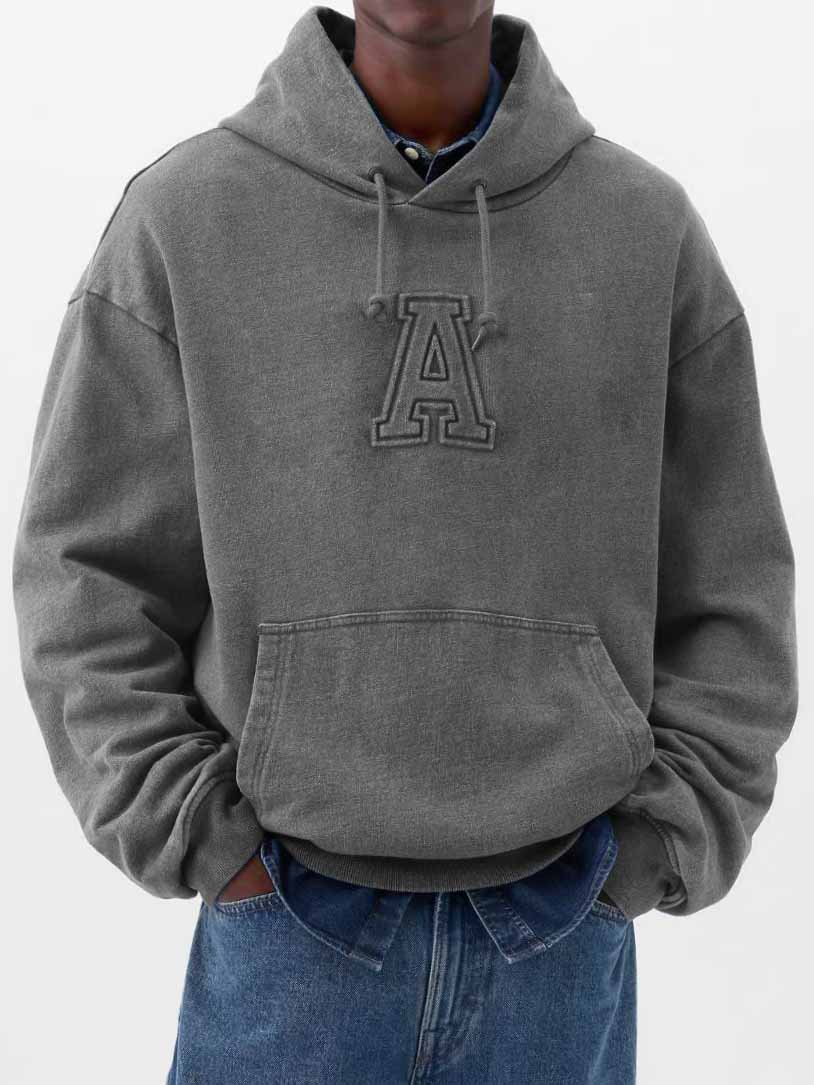 Herren Stilvolle Freizeit Vintage Locker sitzende Kapuzenpullover mit gesticktem Logo