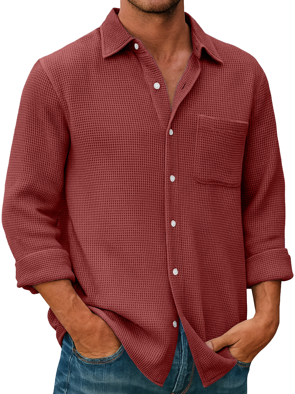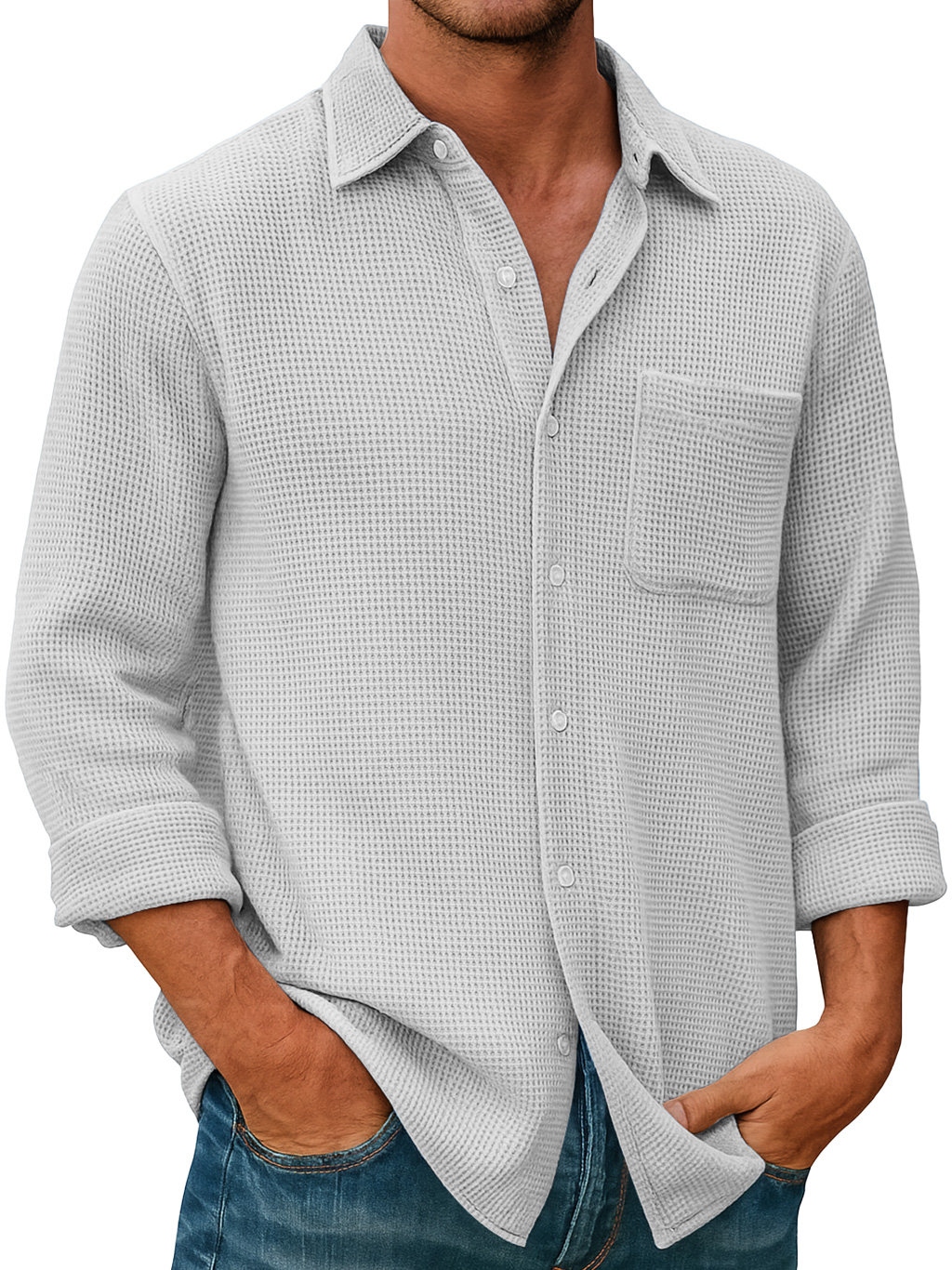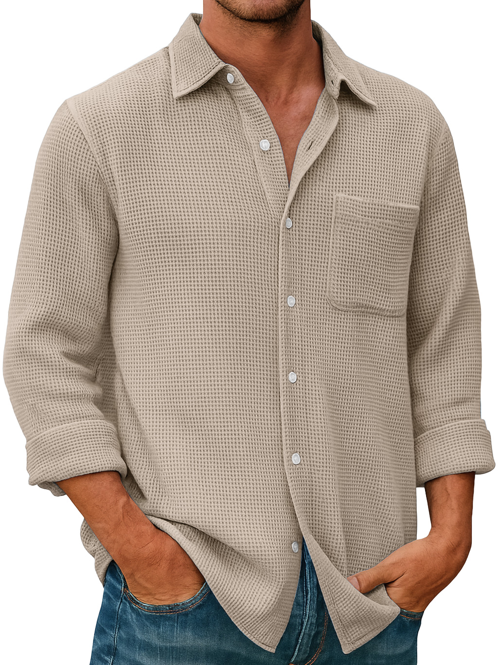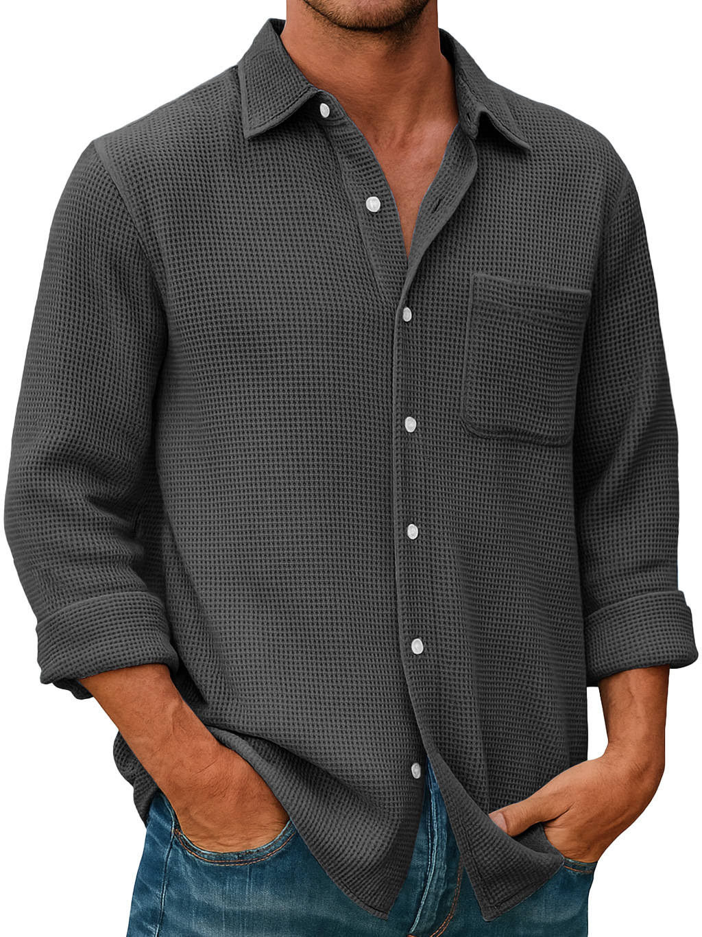 Herren Waffel Alltag Freizeit Tasche Komfort Langarmshirt