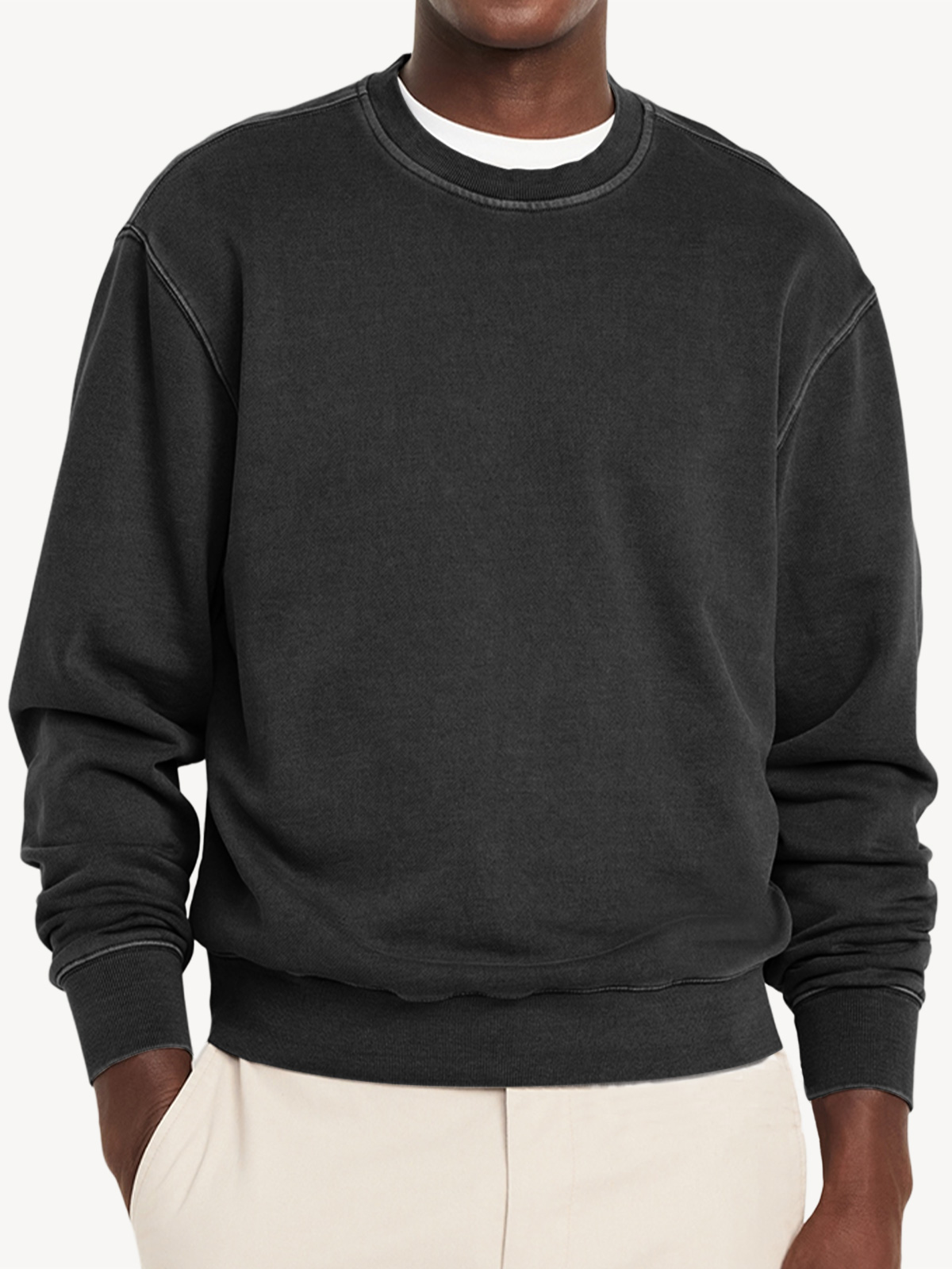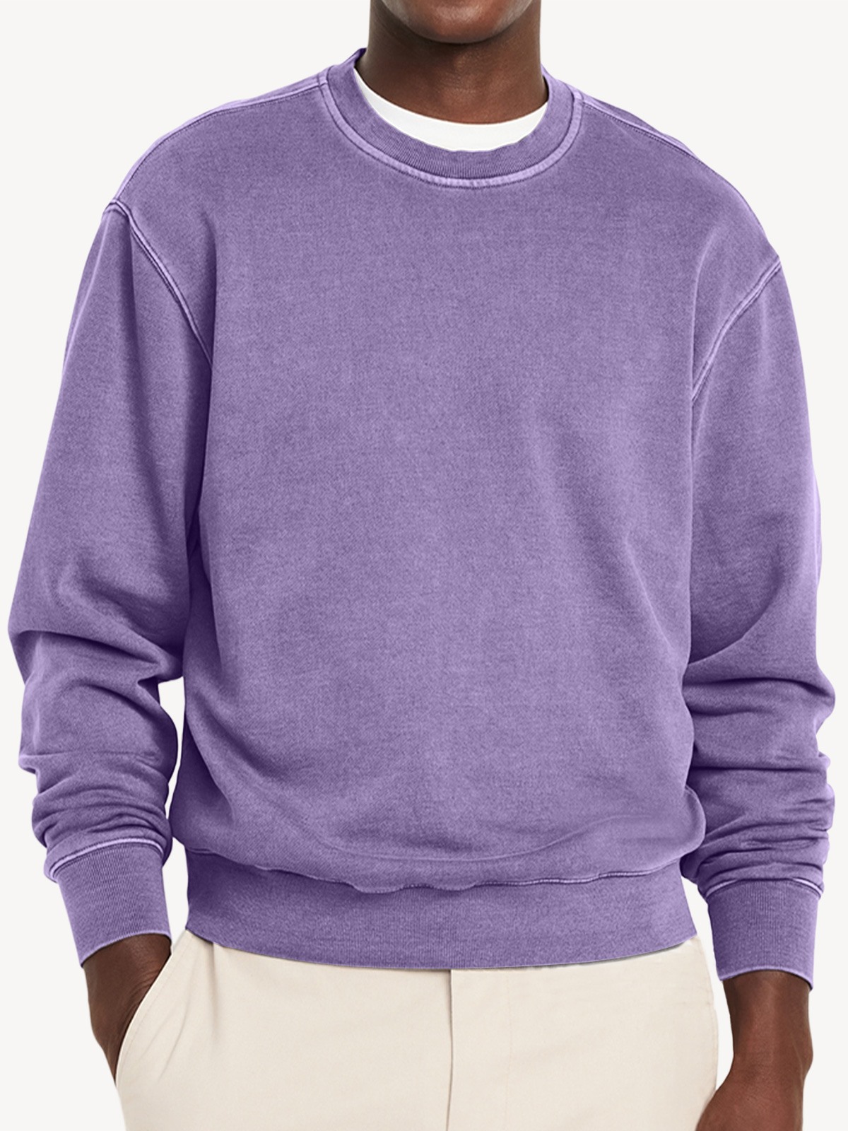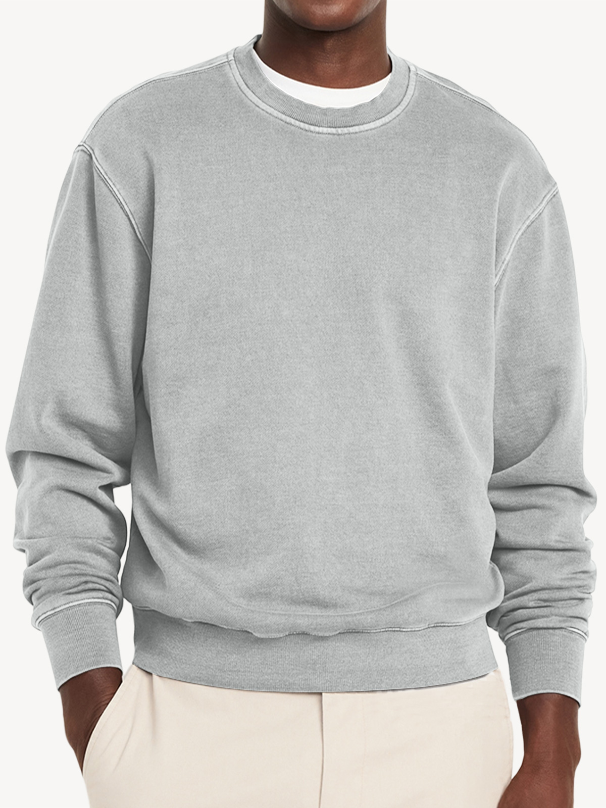 Men's Casual Round Neck Solid Color Comfortable Long-Sleeved Sweatshirt