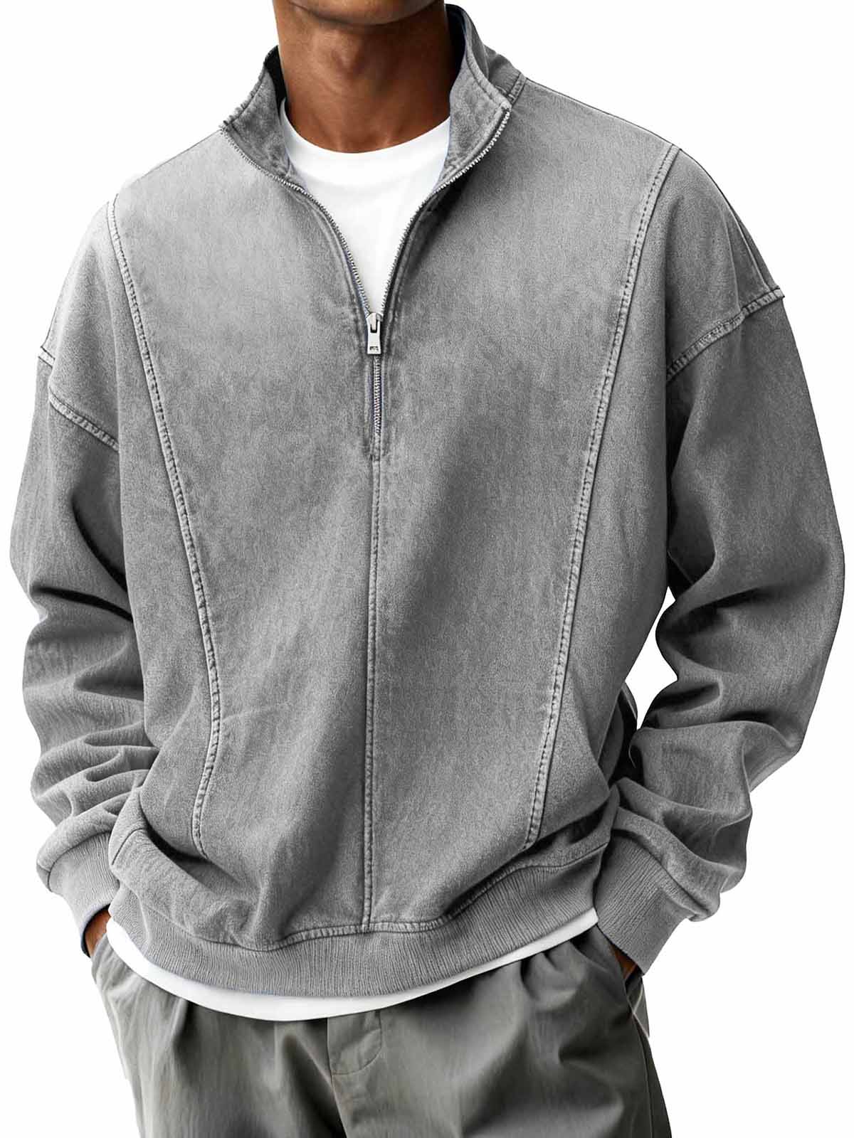 Men's Retro Fashion Patchwork Half-Zip Stand Collar Loose Long-Sleeve Sweatshirt