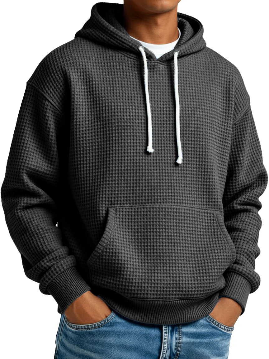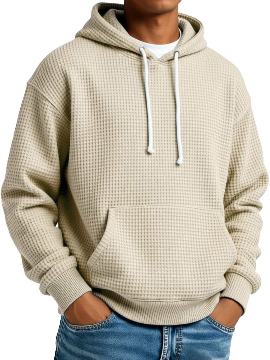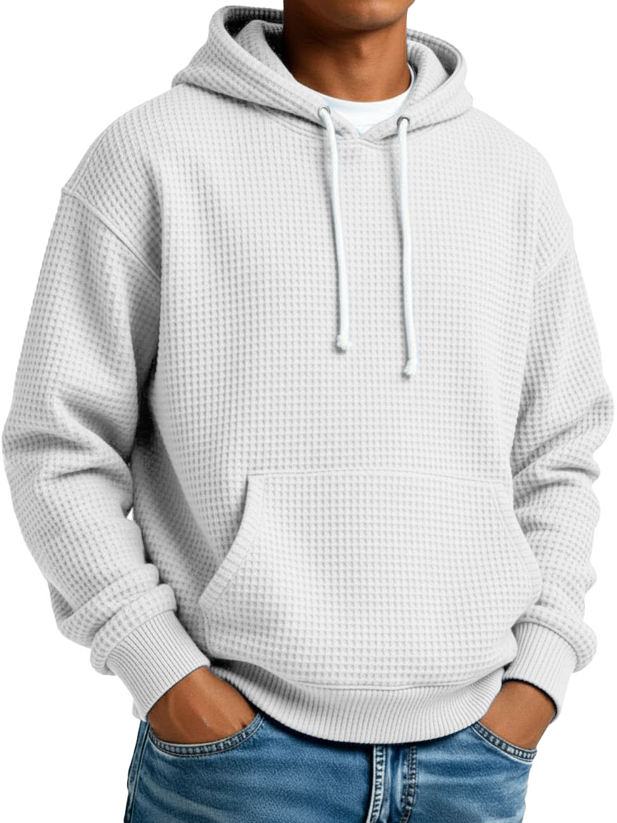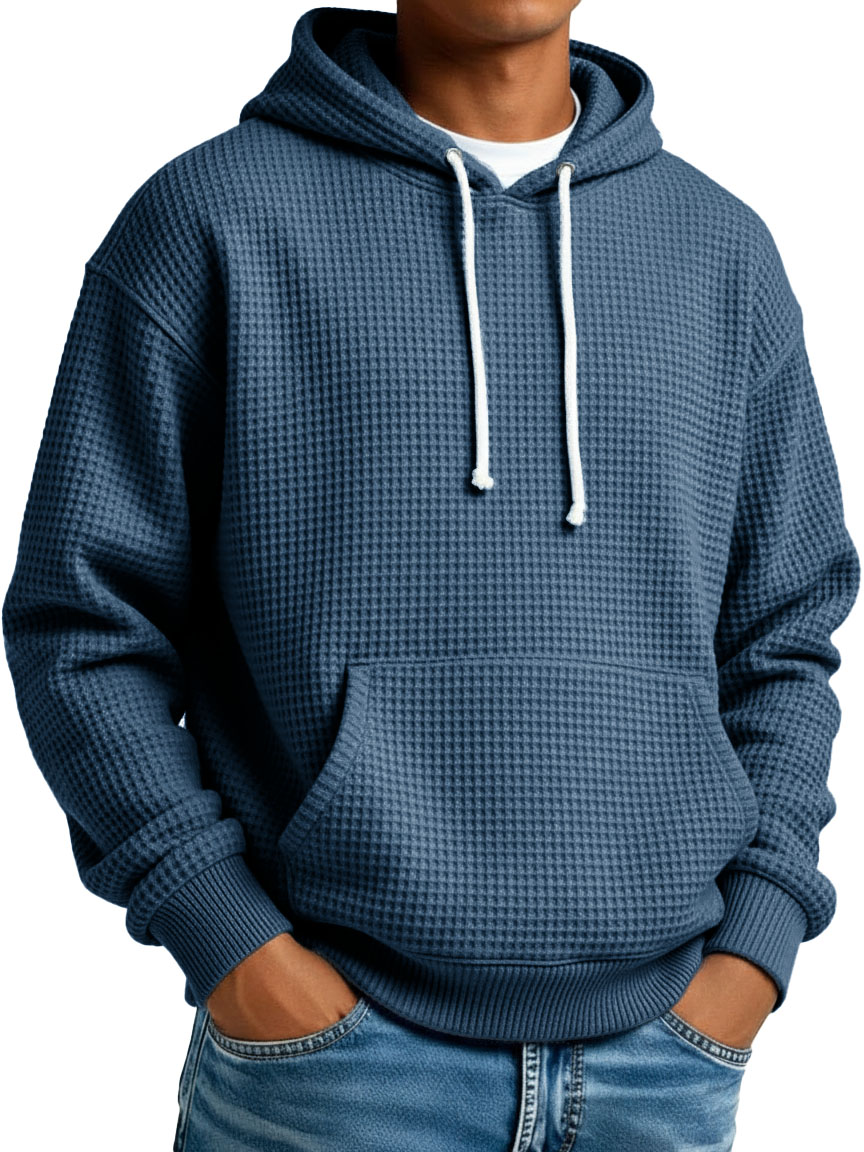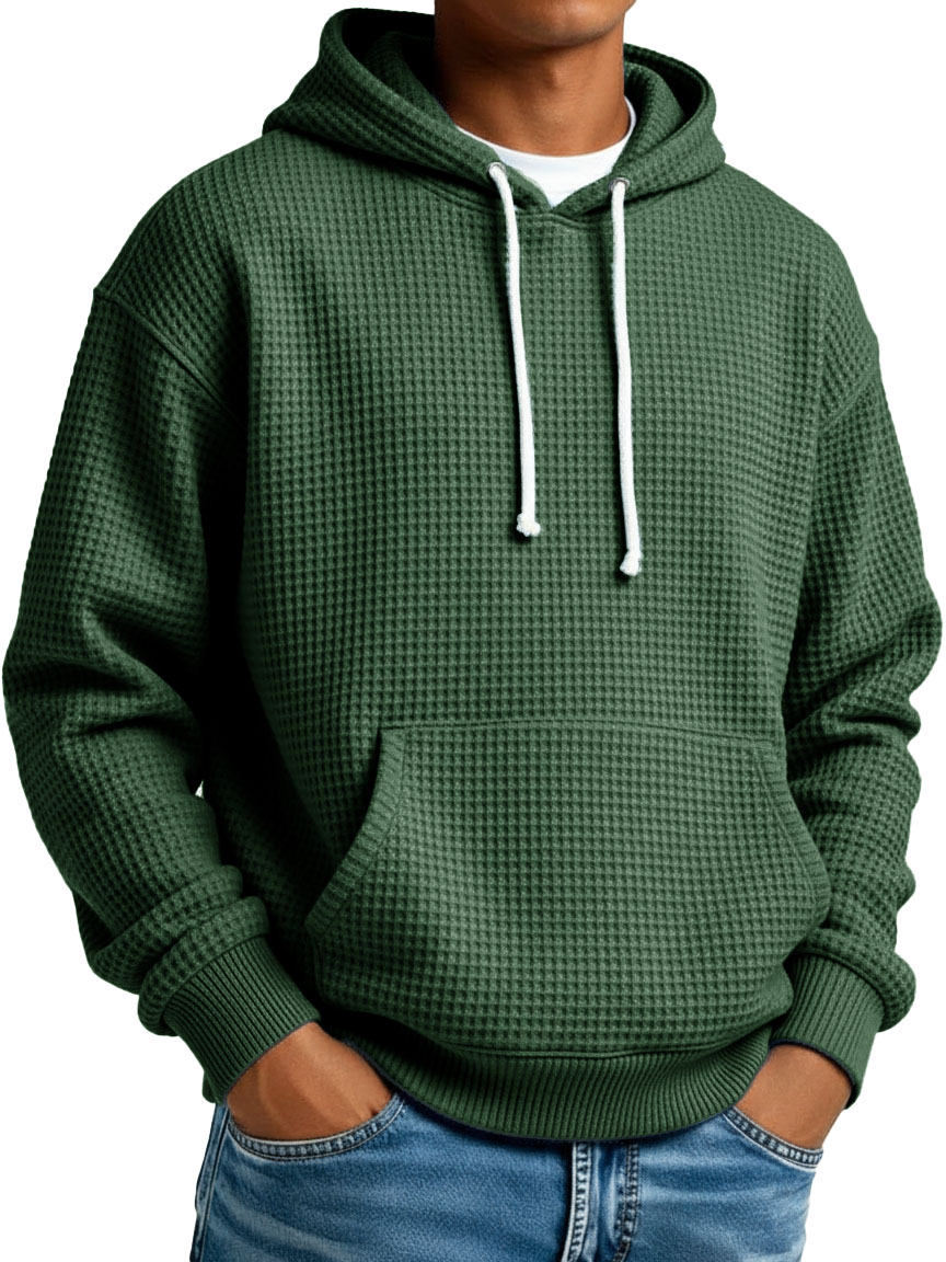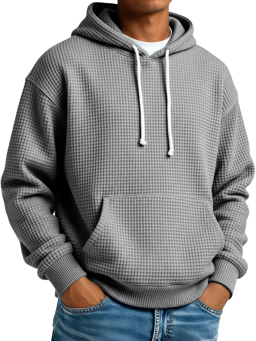Men's Stylish Street-style Waffle Fabric Pocket Hooded Sweatshirt