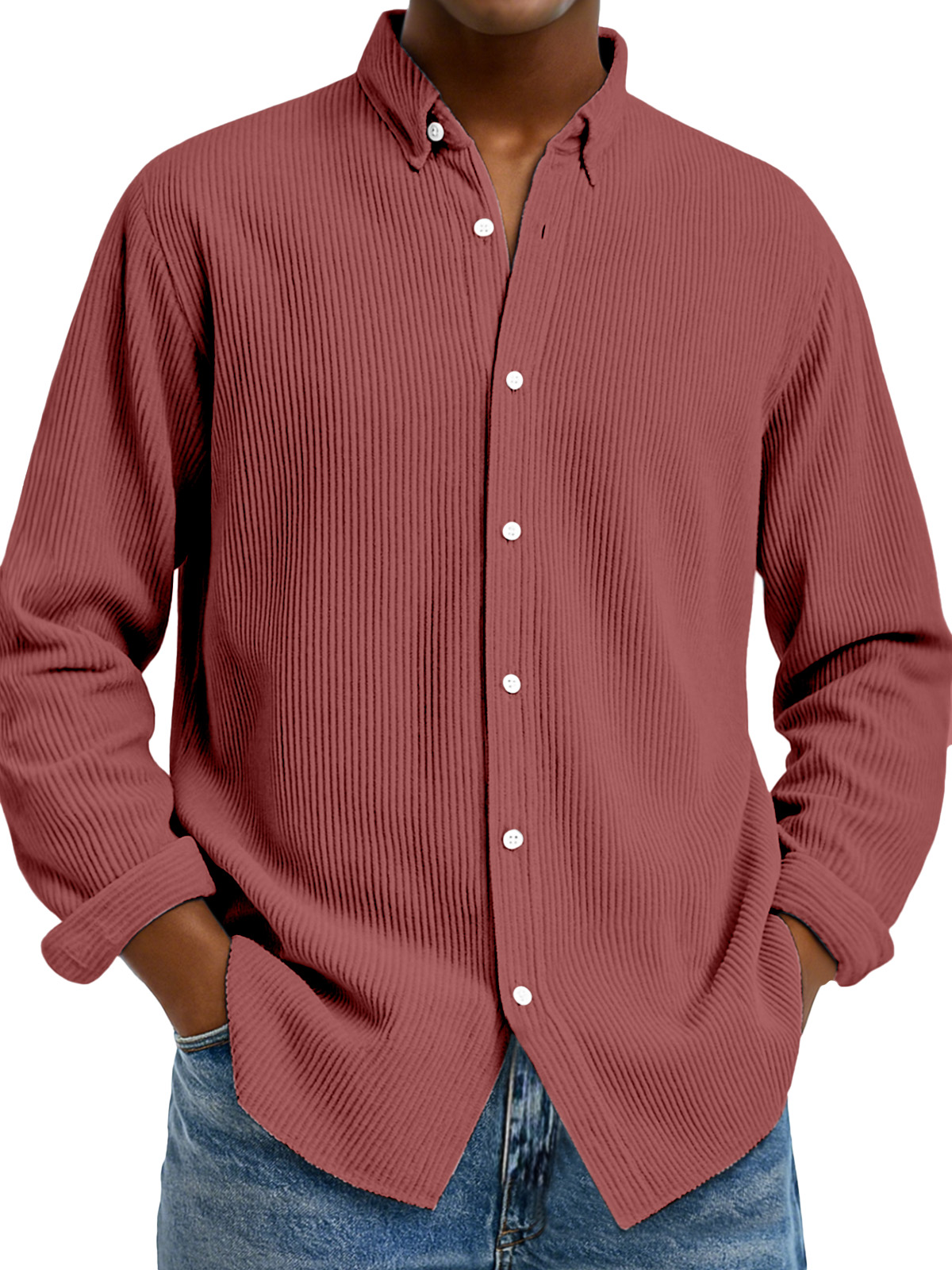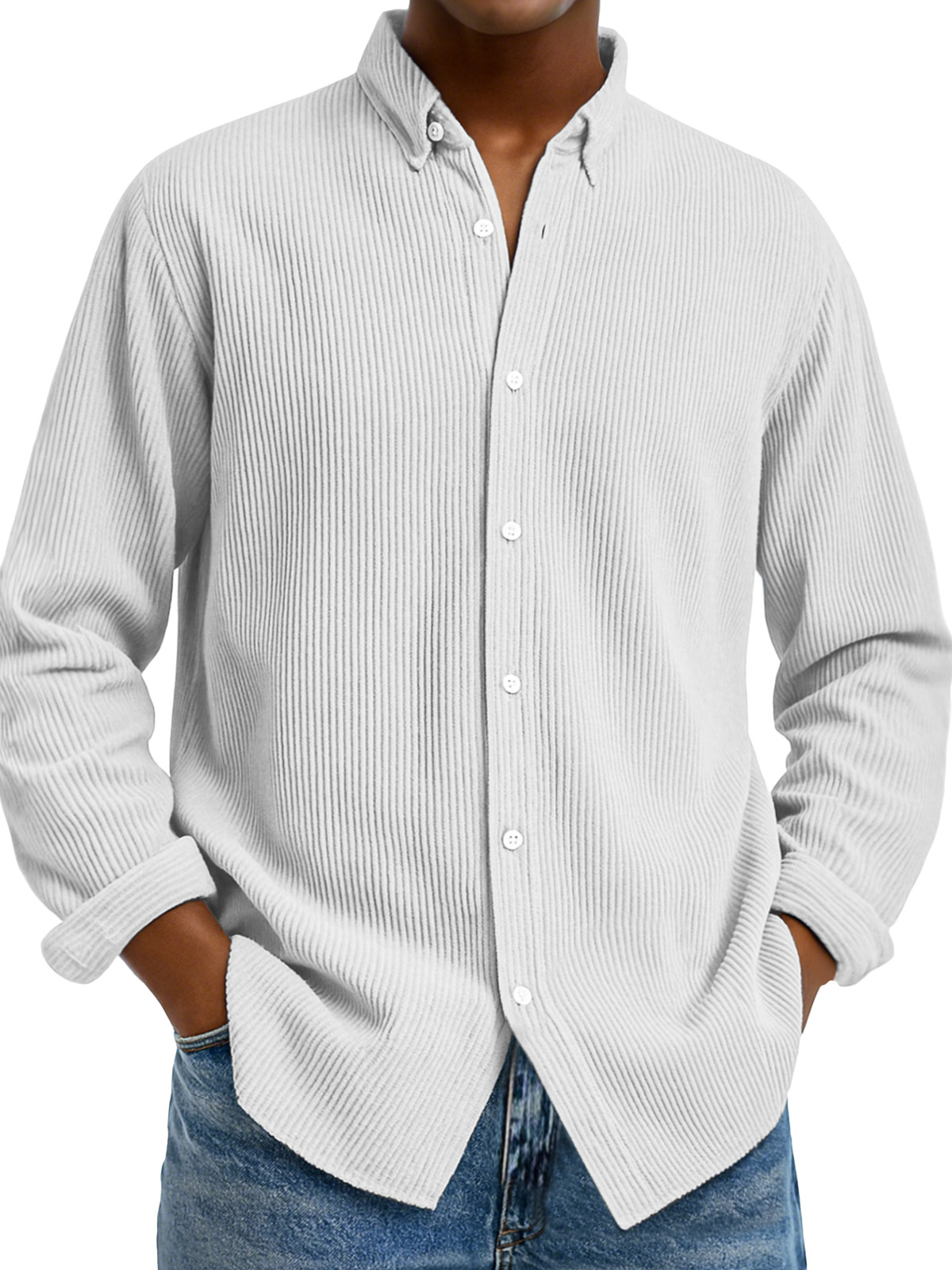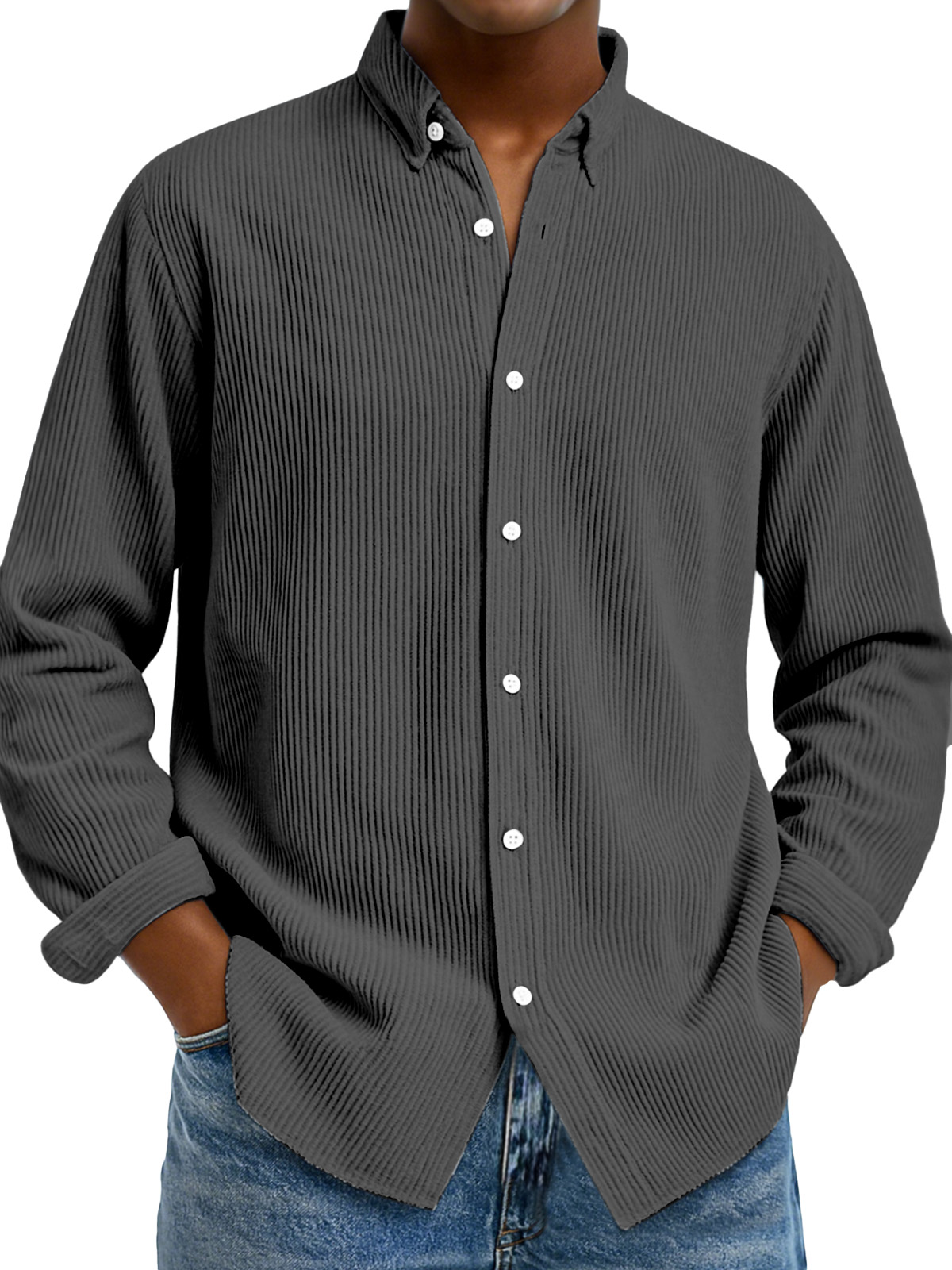 Camicia da uomo casual a tinta unita con colletto verticale e maniche lunghe
