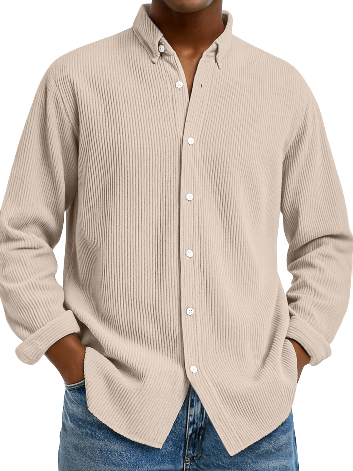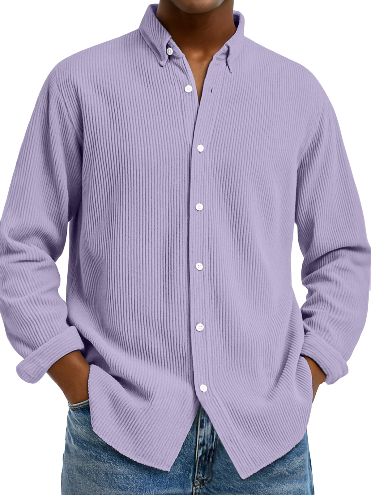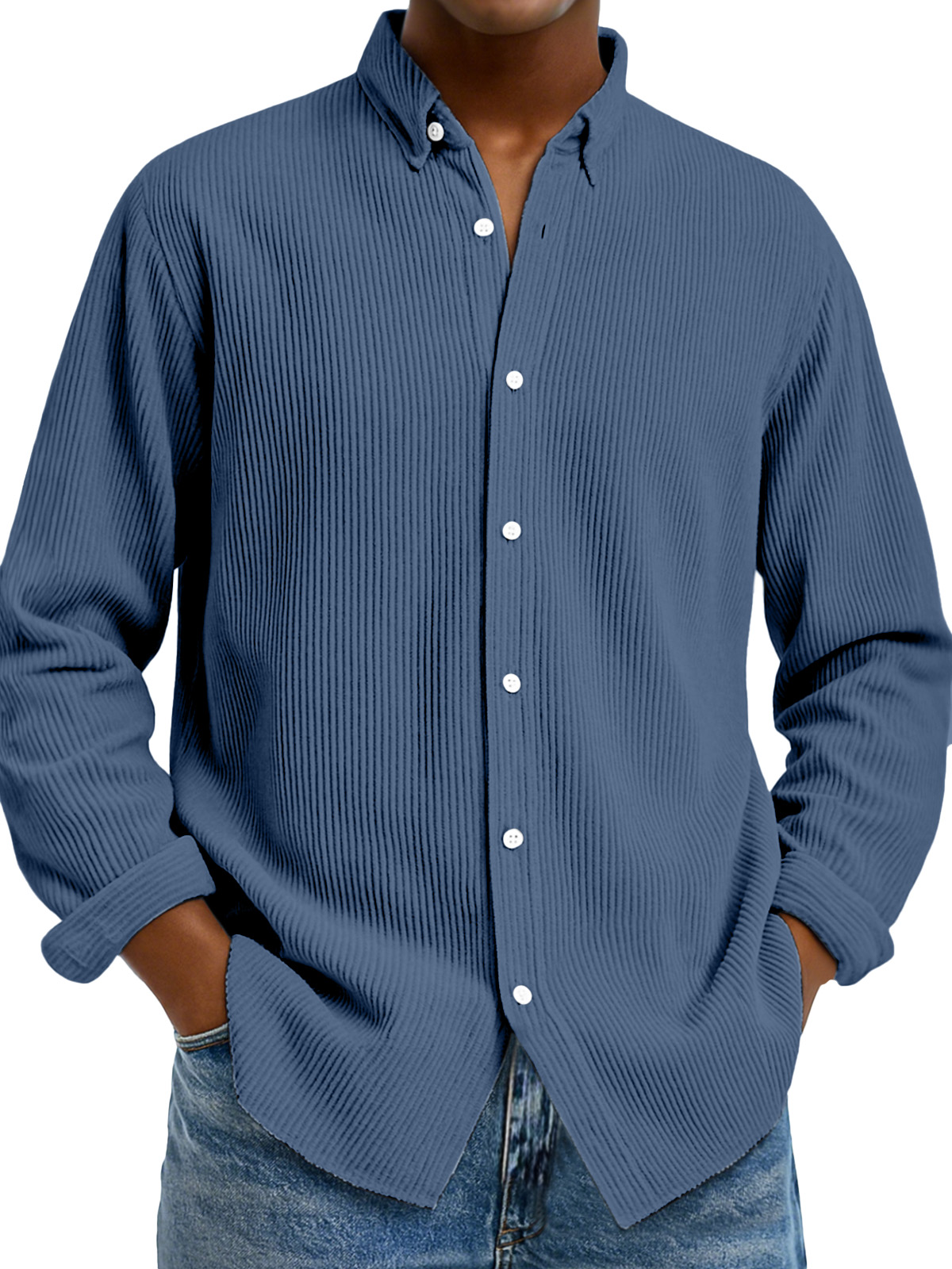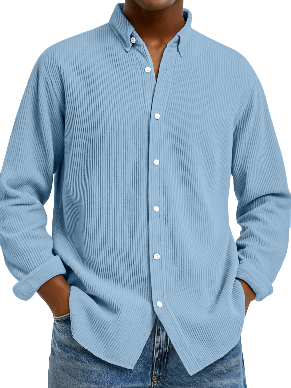 Camicia da uomo casual a tinta unita con colletto verticale e maniche lunghe