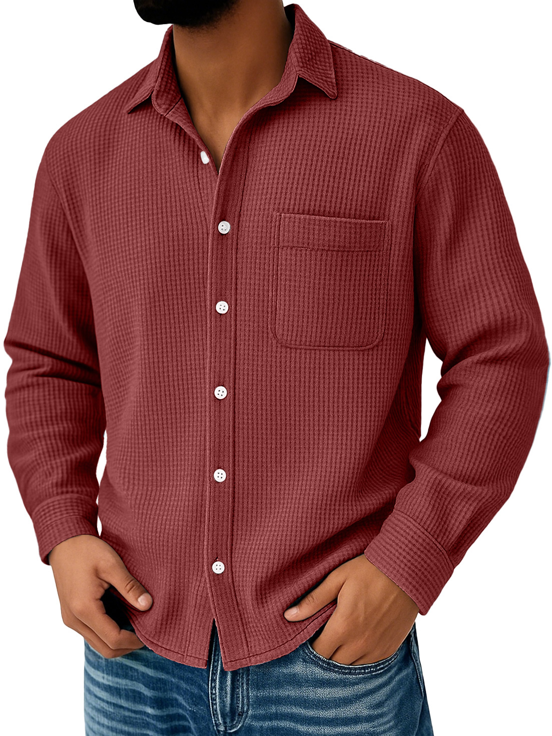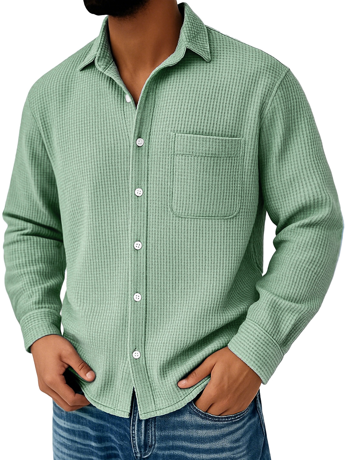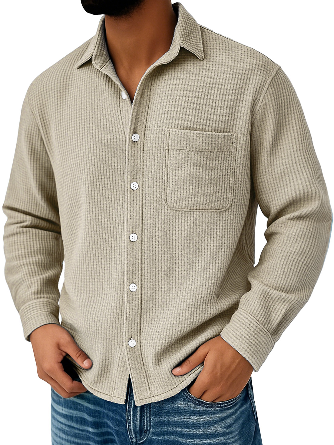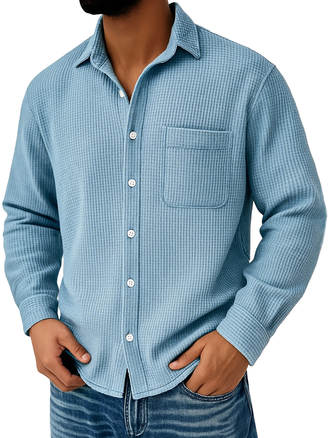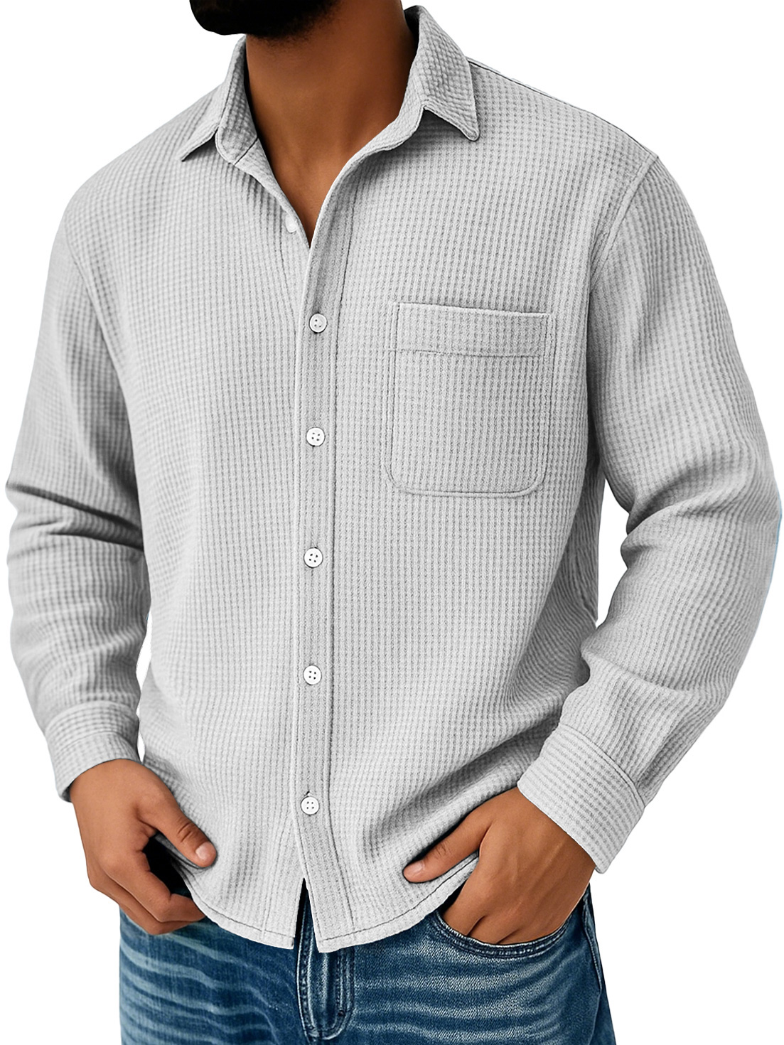 Camicia a maniche lunghe casual con tasca in waffle per uomo, comfort quotidiano