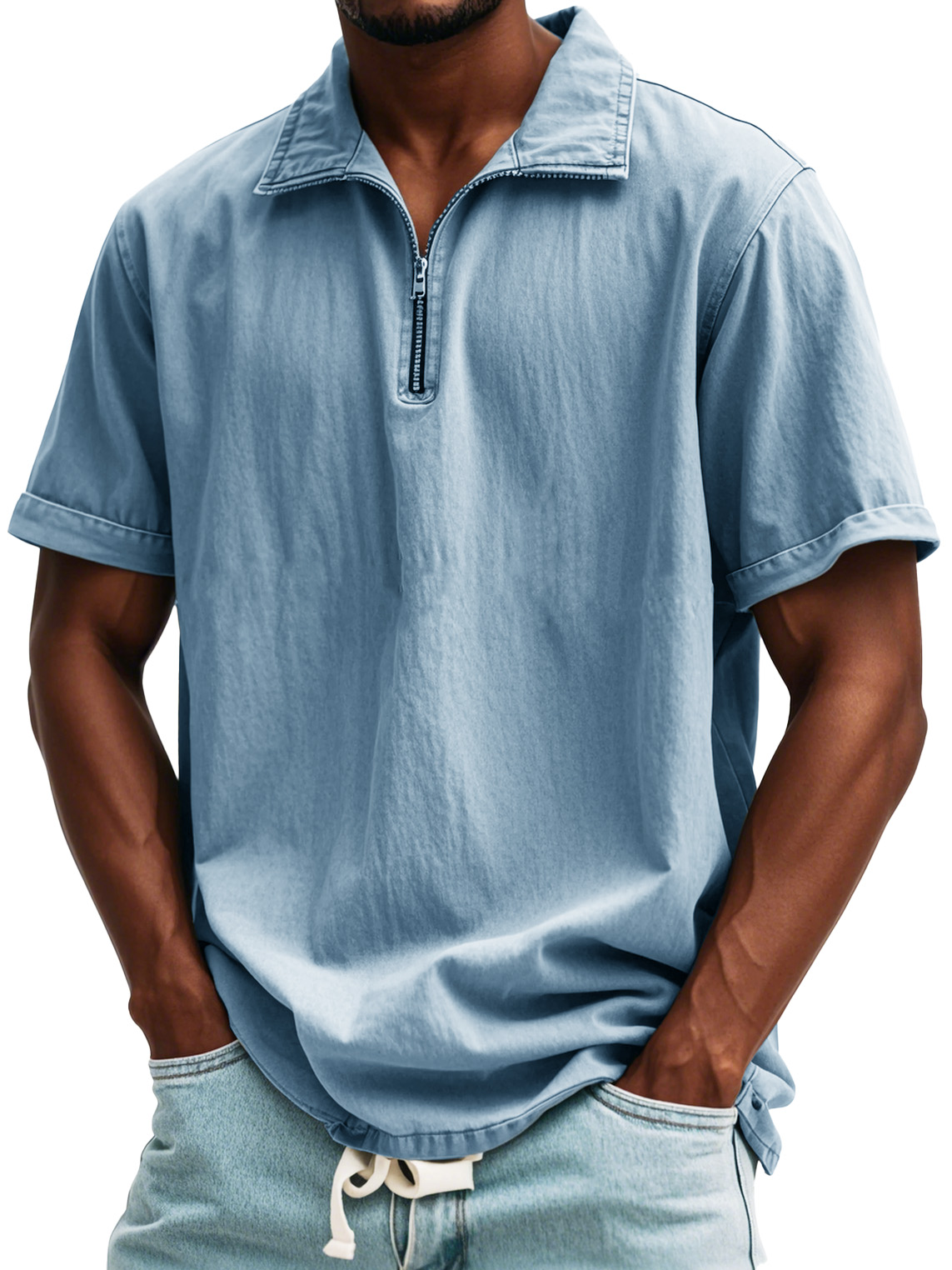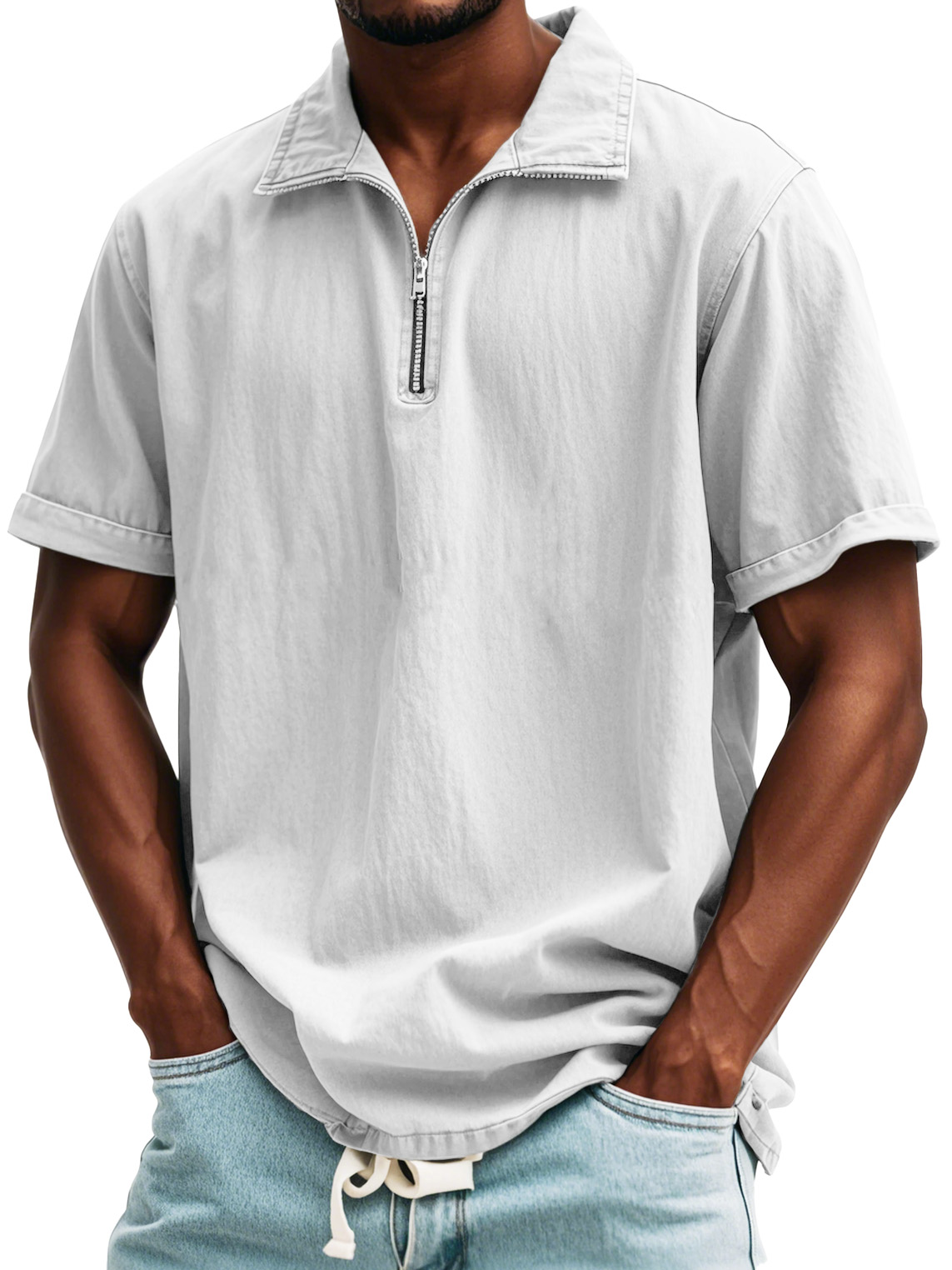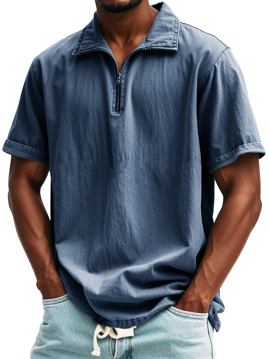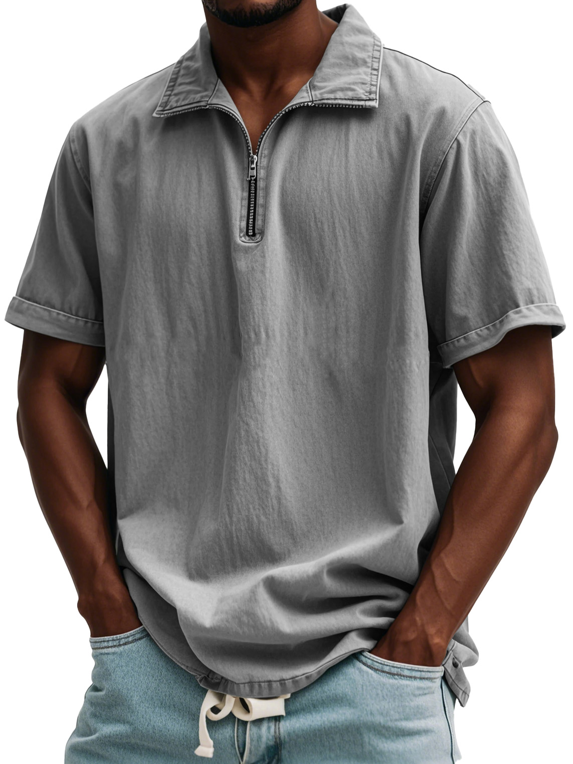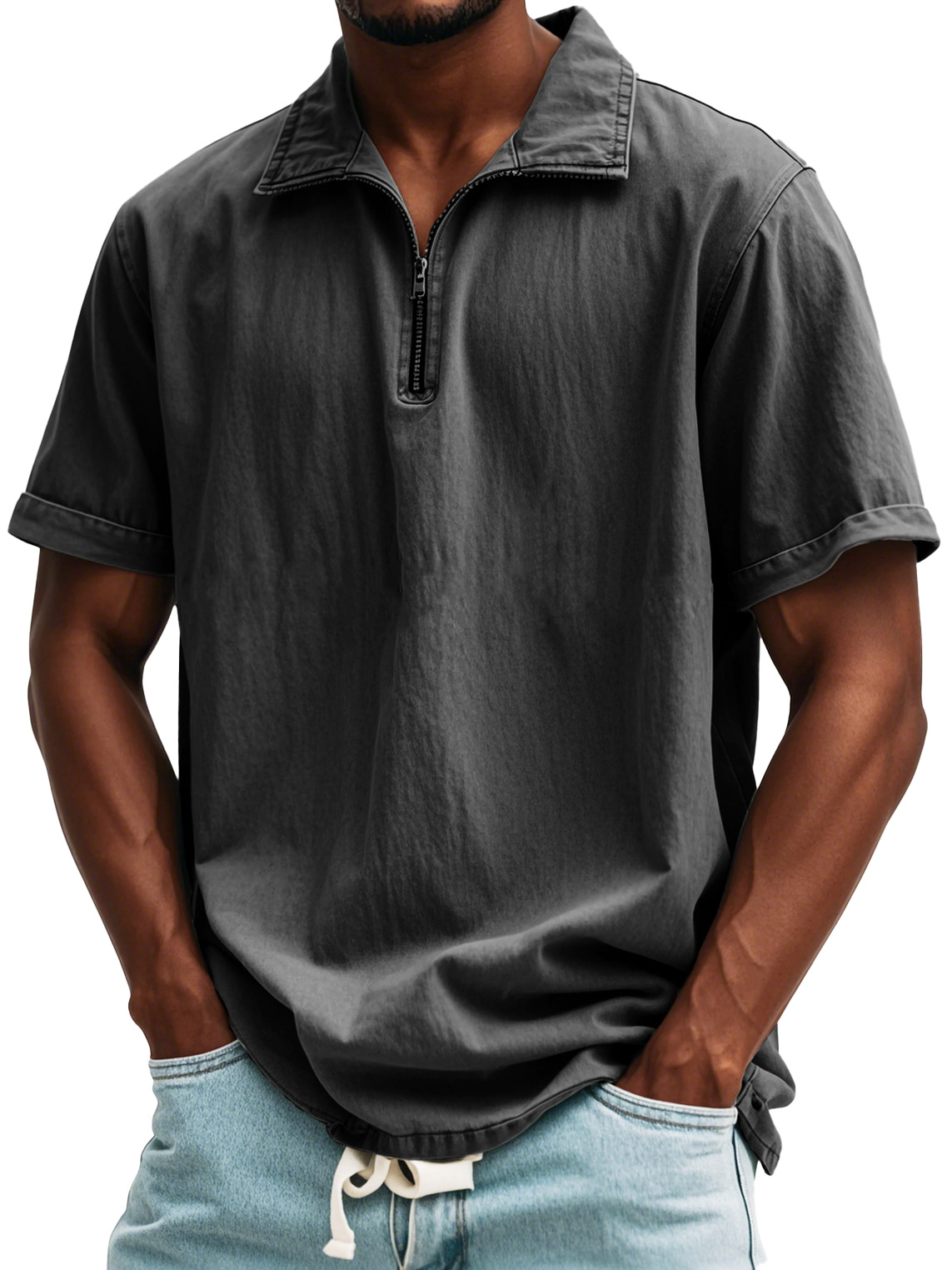 Camicia a maniche corte con colletto alto e zip in stile retrò da uomo