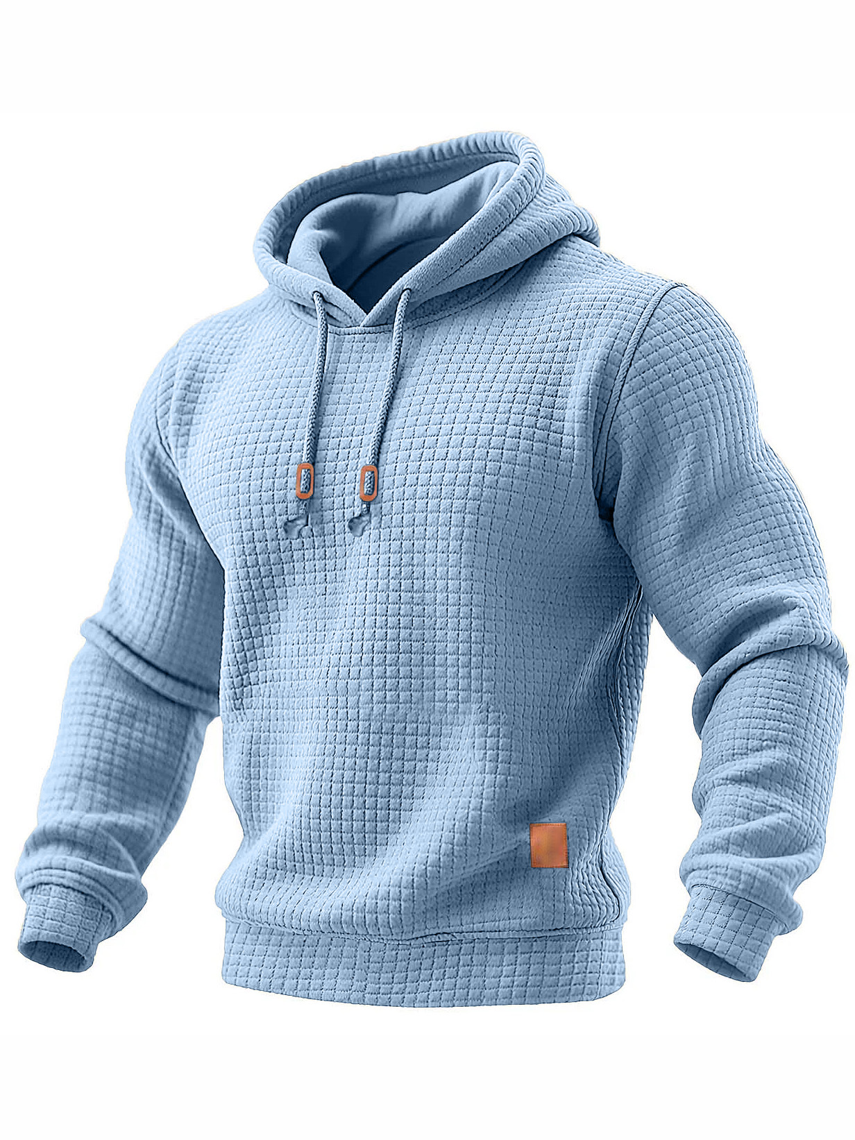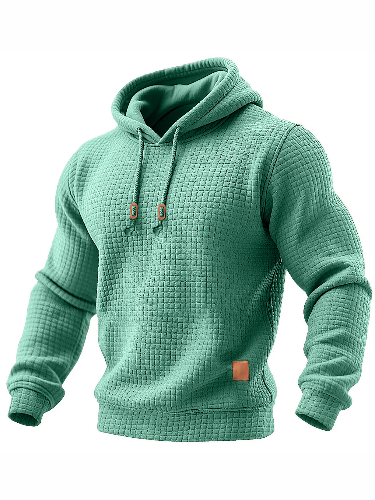 Felpa con cappuccio a maniche lunghe da uomo in waffle trapuntato, colore solido, per uso quotidiano.
