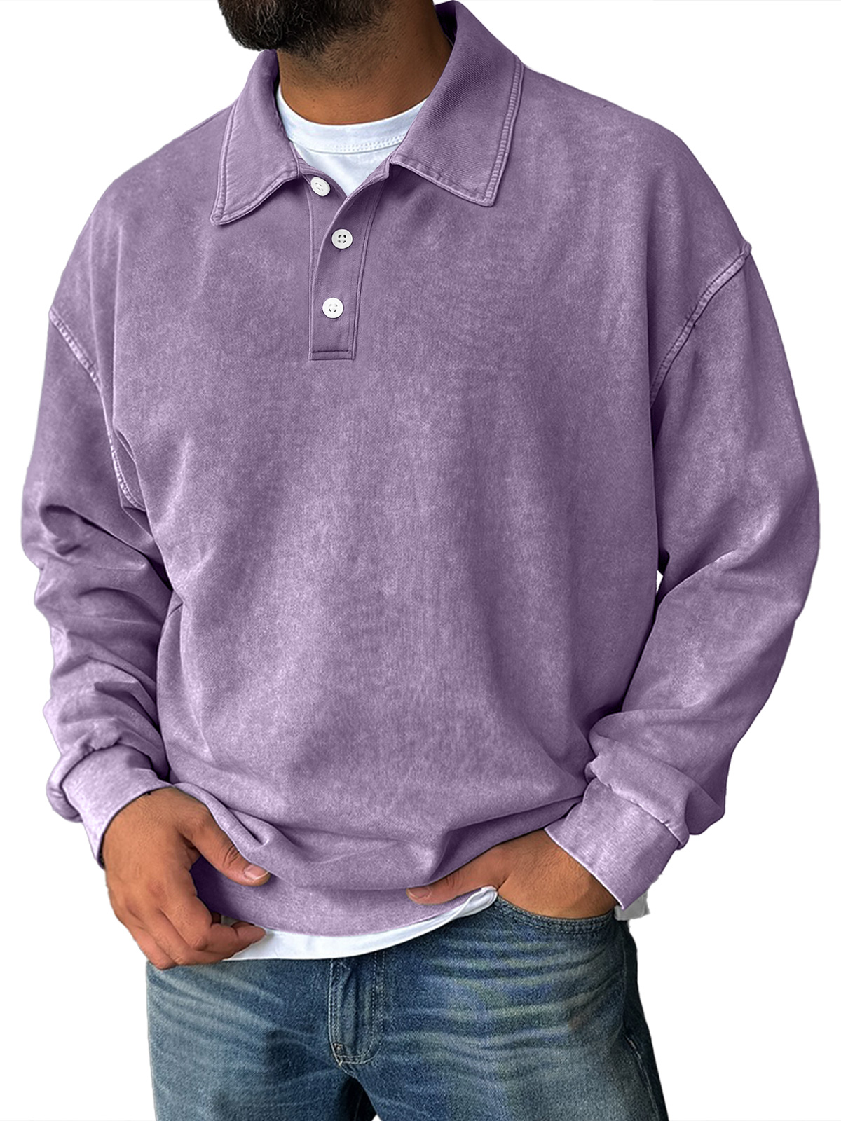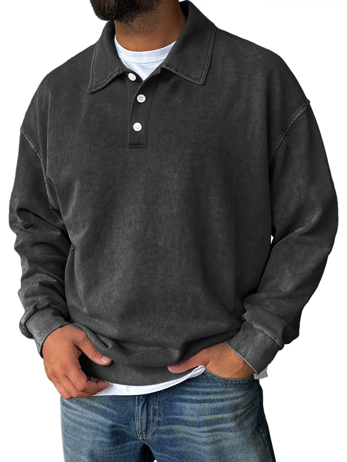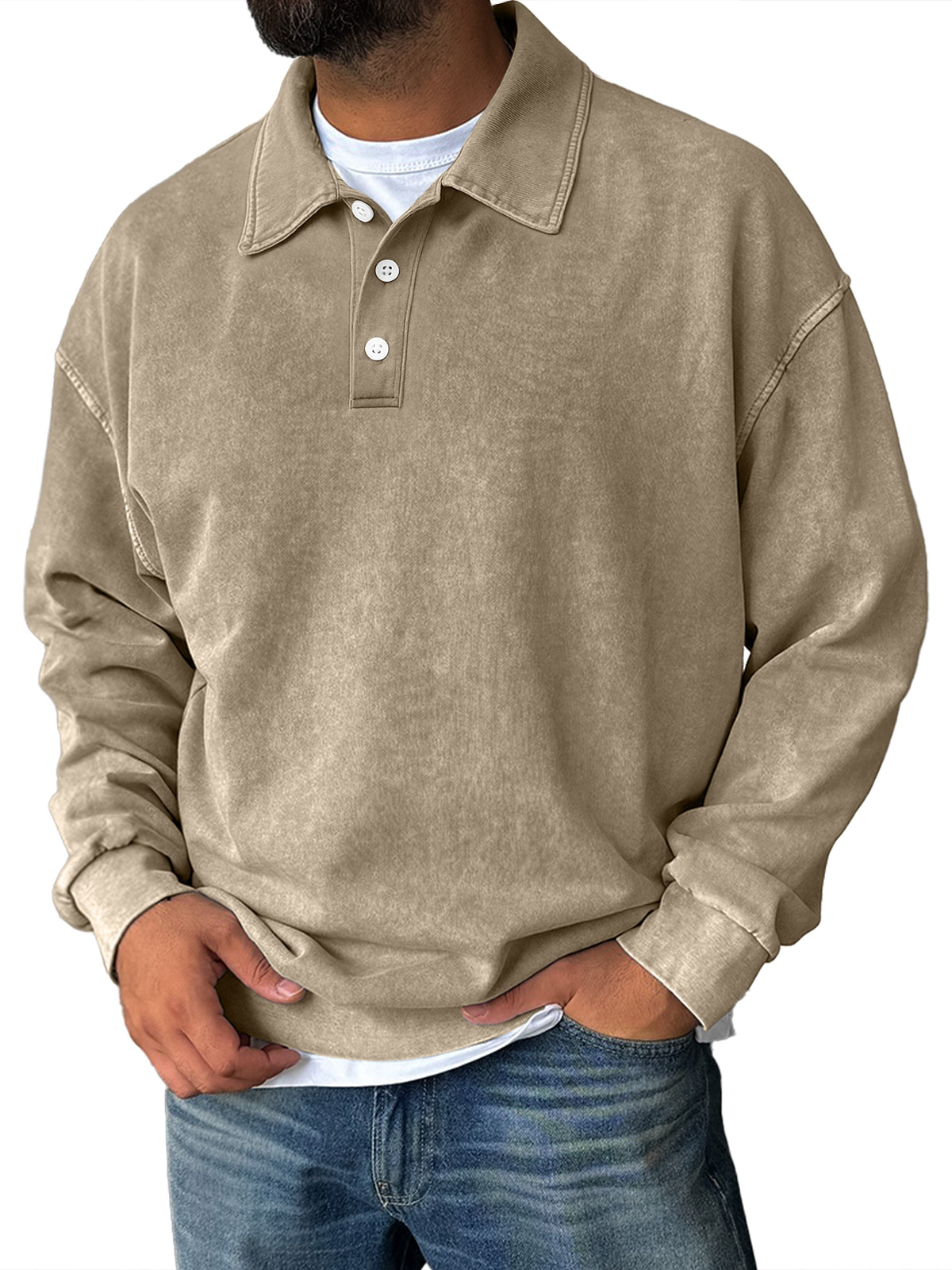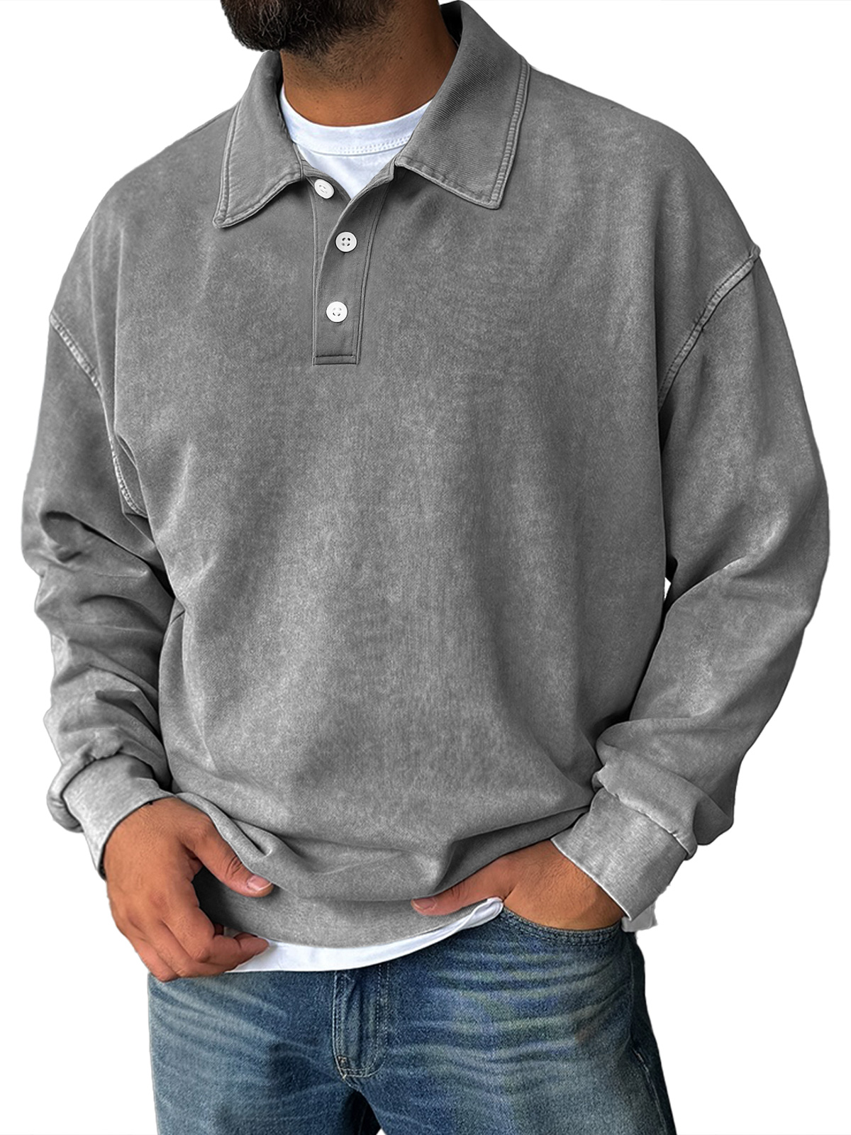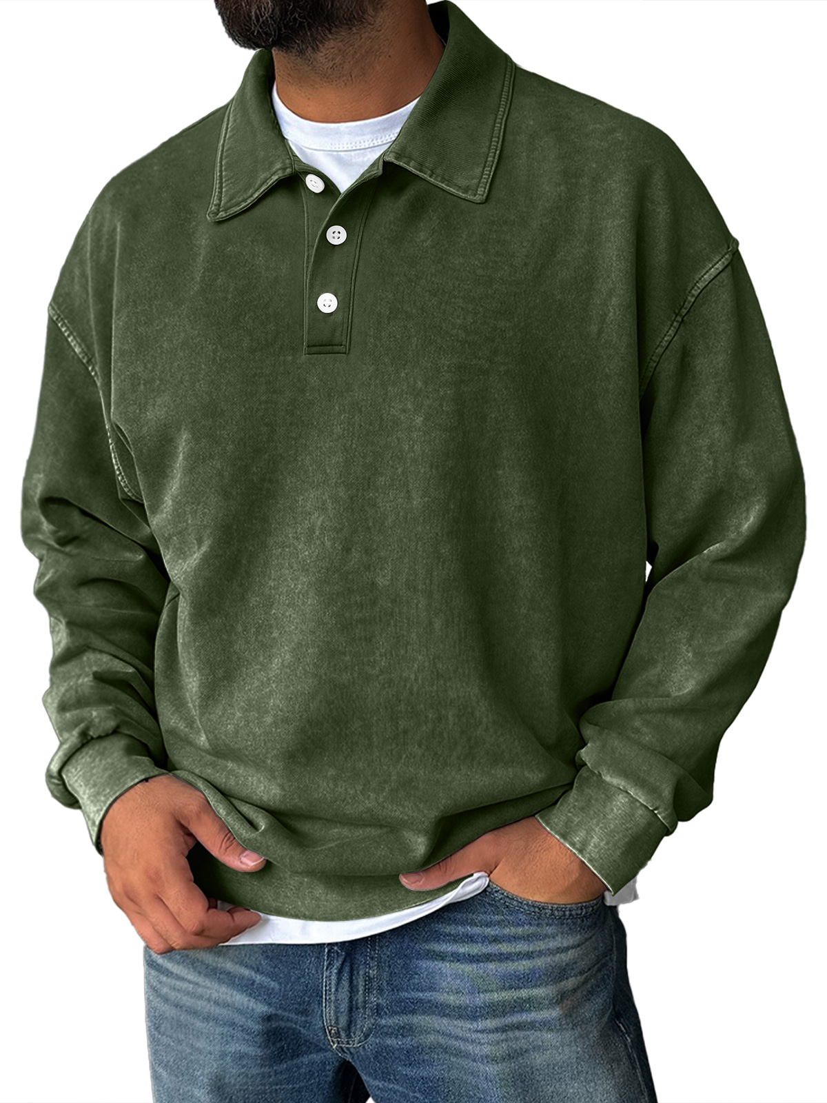 Felpa comoda con colletto a revers e bottoni da uomo in stile retrò per l'uso quotidiano