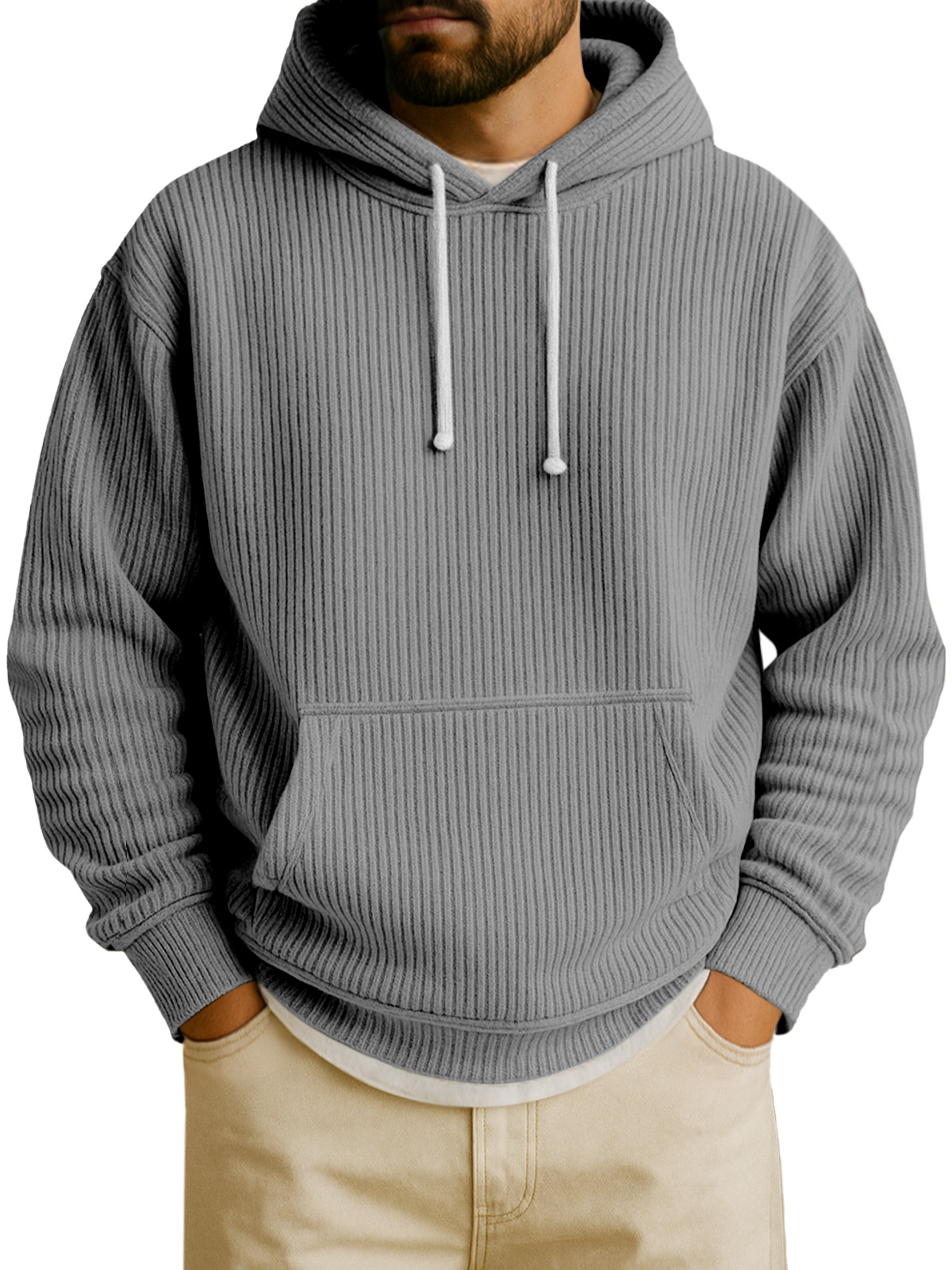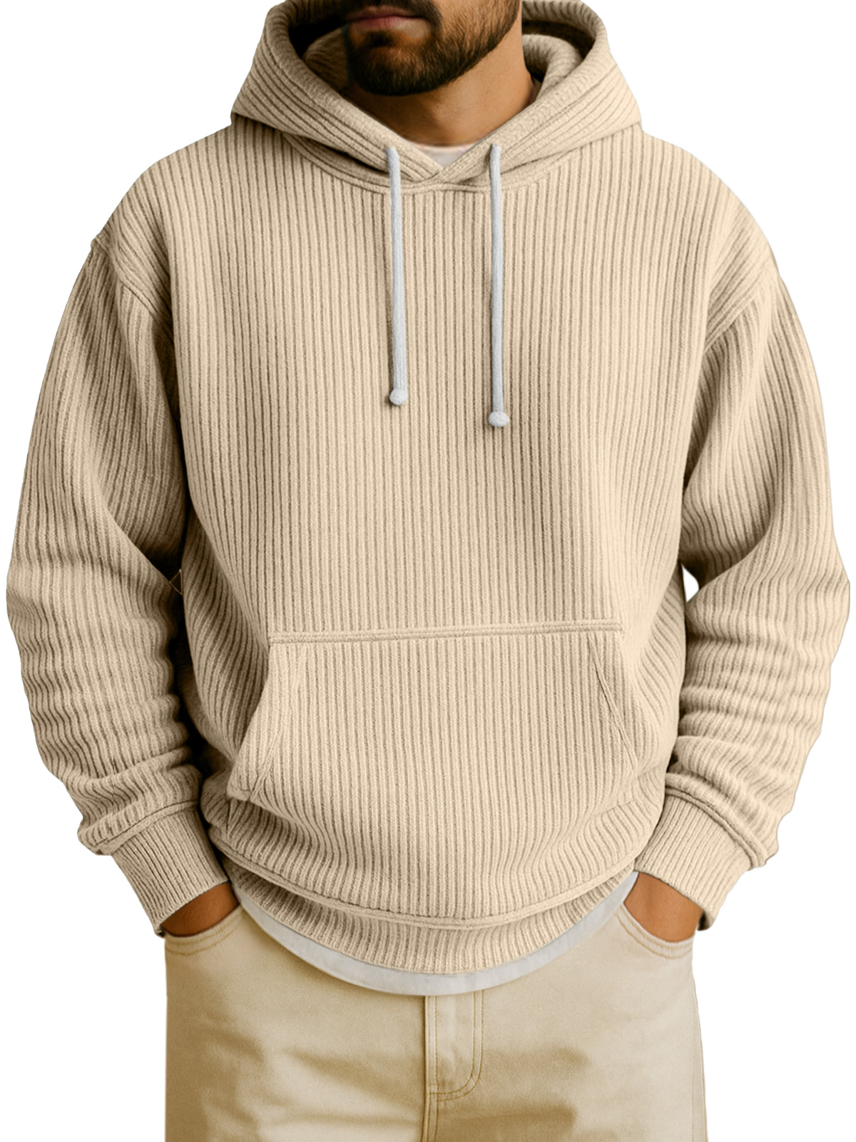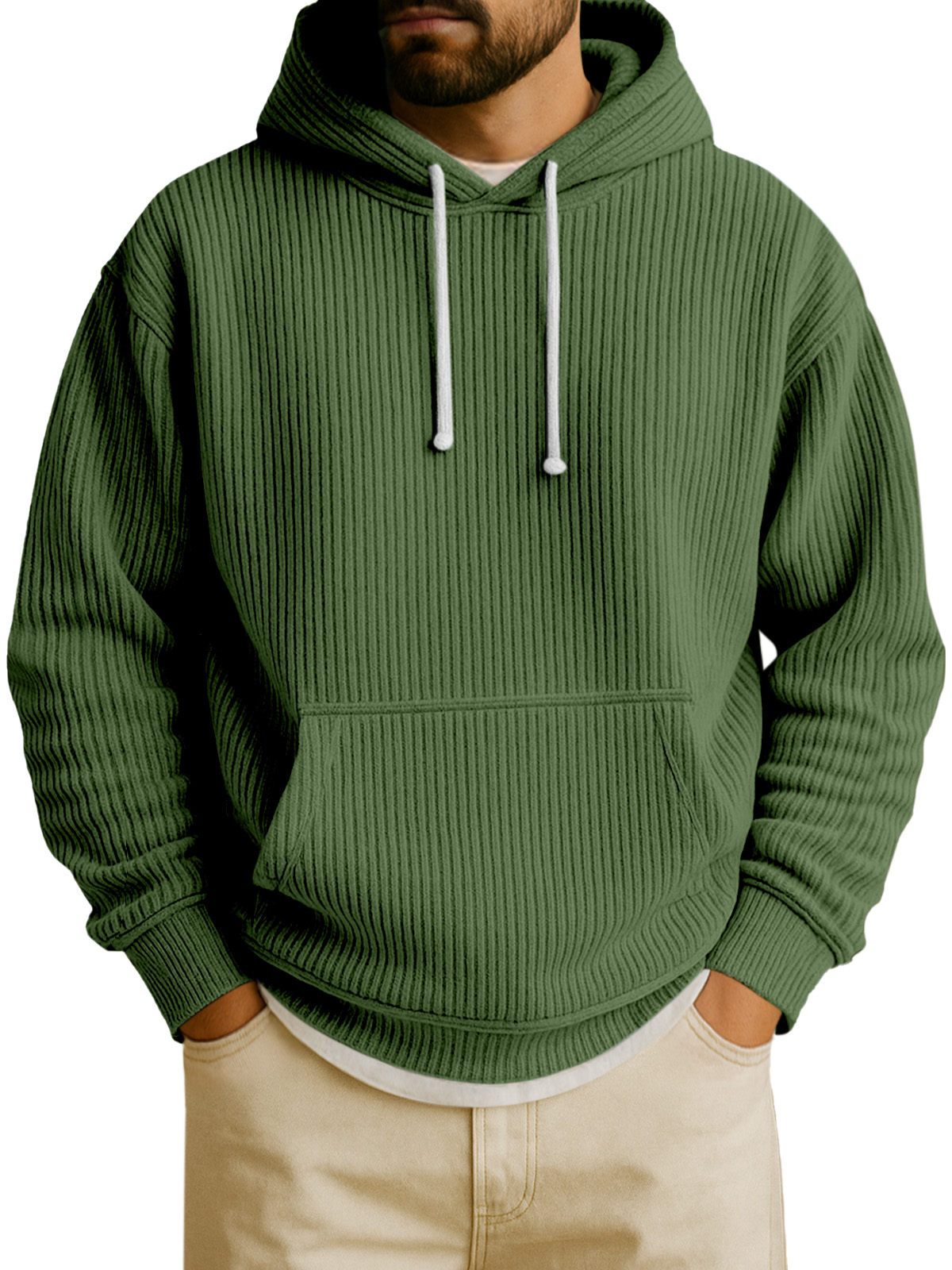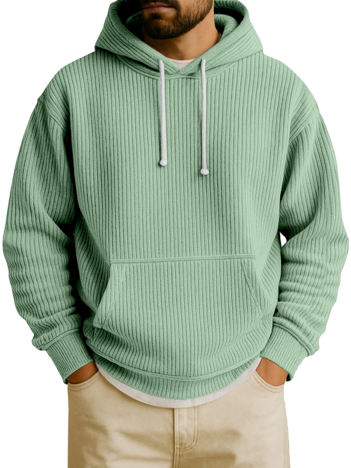 Felpa con cappuccio a maniche lunghe in tinta unita verticale per uomo