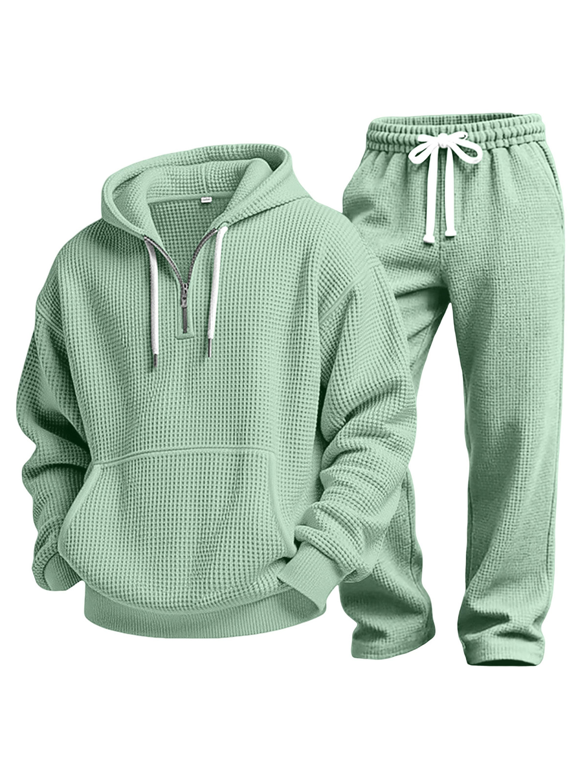 Casual Solid Color Versatile Waffle-knit Sweatshirt And Trousers Two-piece Set