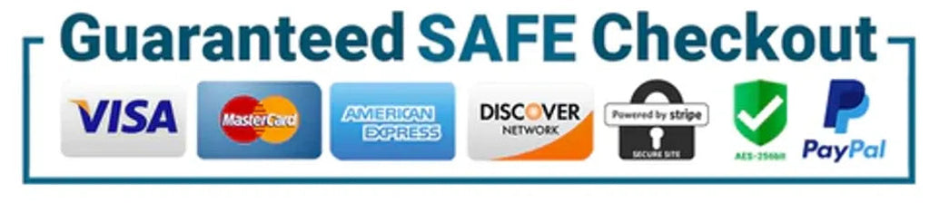 The Checkout Process is Guaranteed to be 100% Safe and Secure with Visa, Mastercard, AMex, Discover, Apple Pay or PayPal.