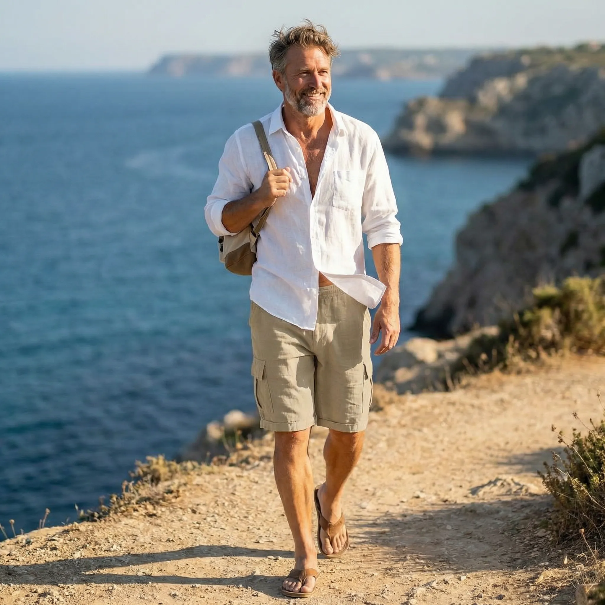 Experience the ultimate fusion of breathable cotton-linen fabric and rugged cargo utility. Designed for the man who values both effortless style and uncompromising comfort. Whether you're coastal trekking or backyard grilling, these shorts move with you.