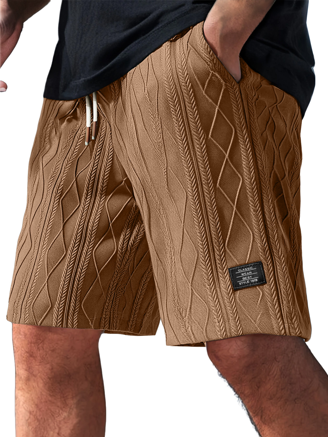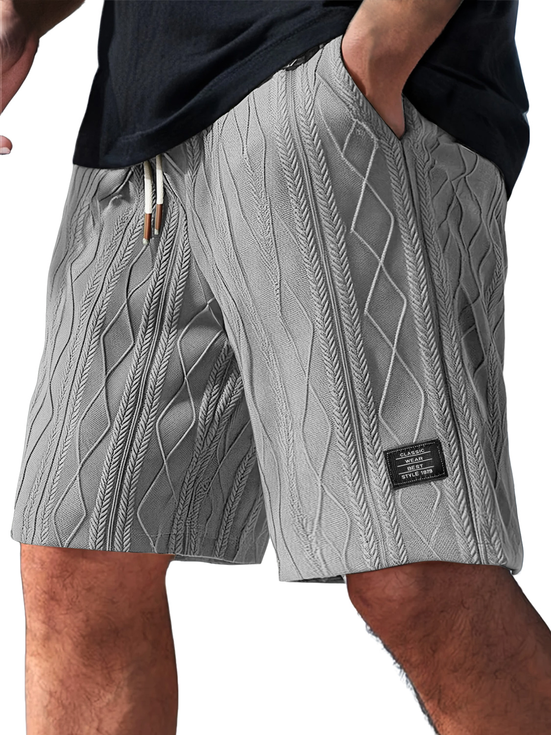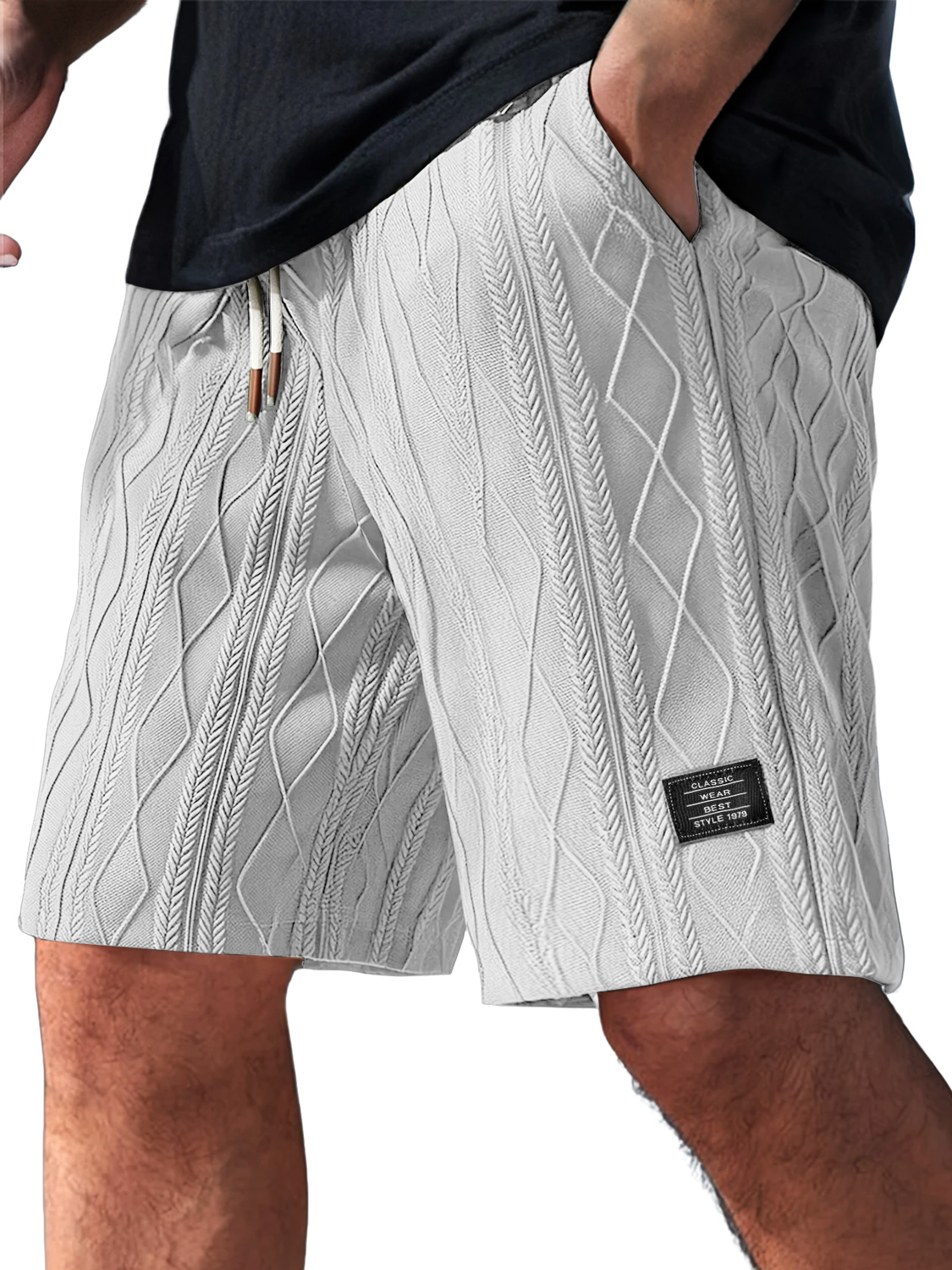 Men's Daily Casual Jacquard Texture Embroidered Logo Shorts