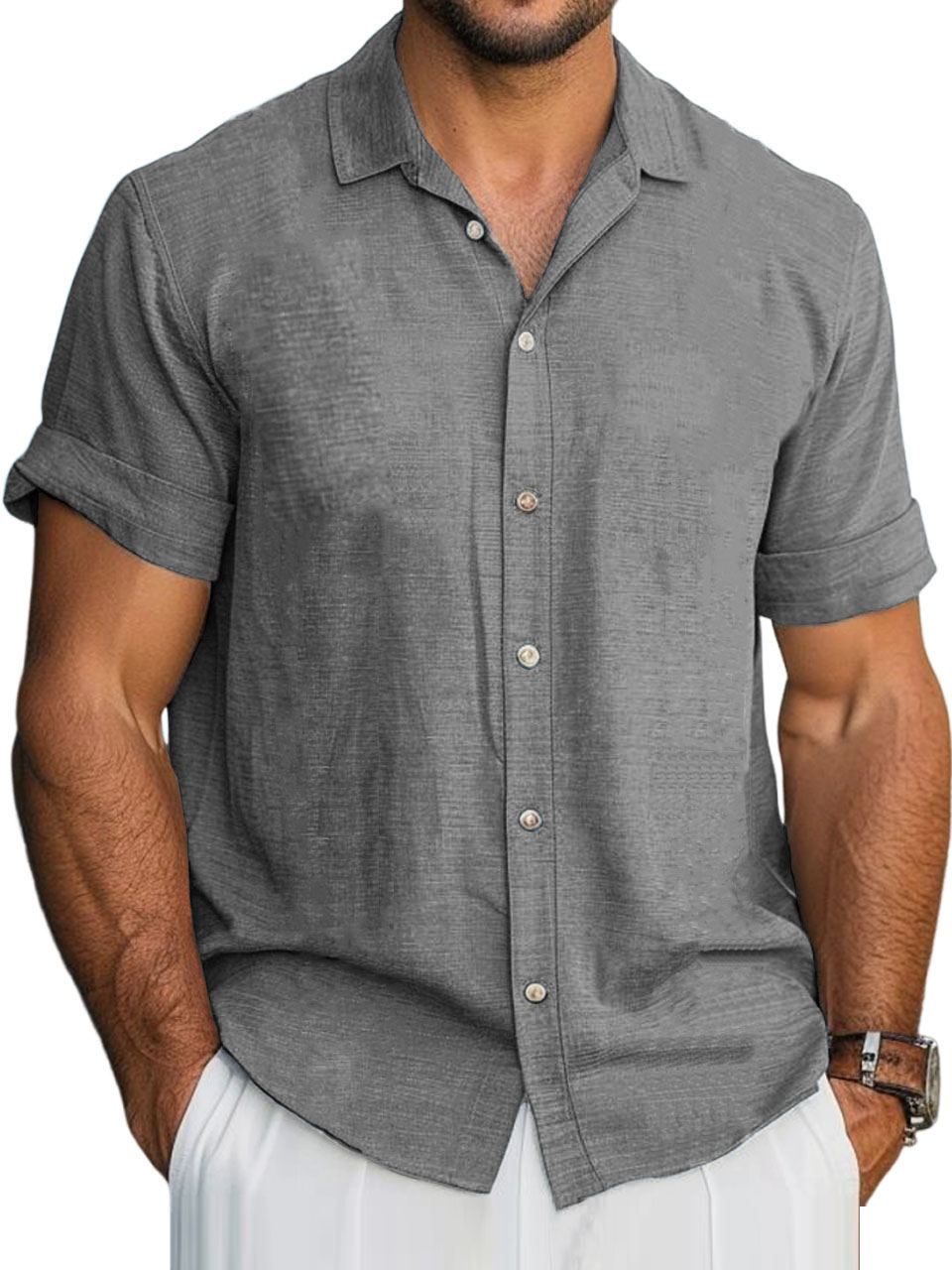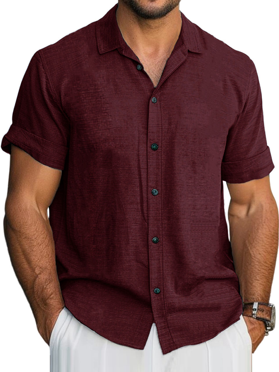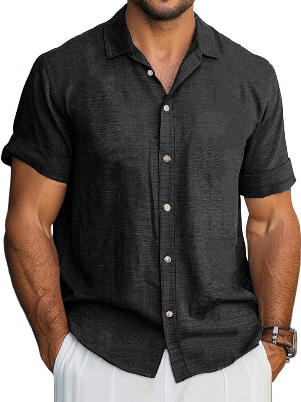 Men's Hawaiian Solid Lapel Short Sleeve Shirt