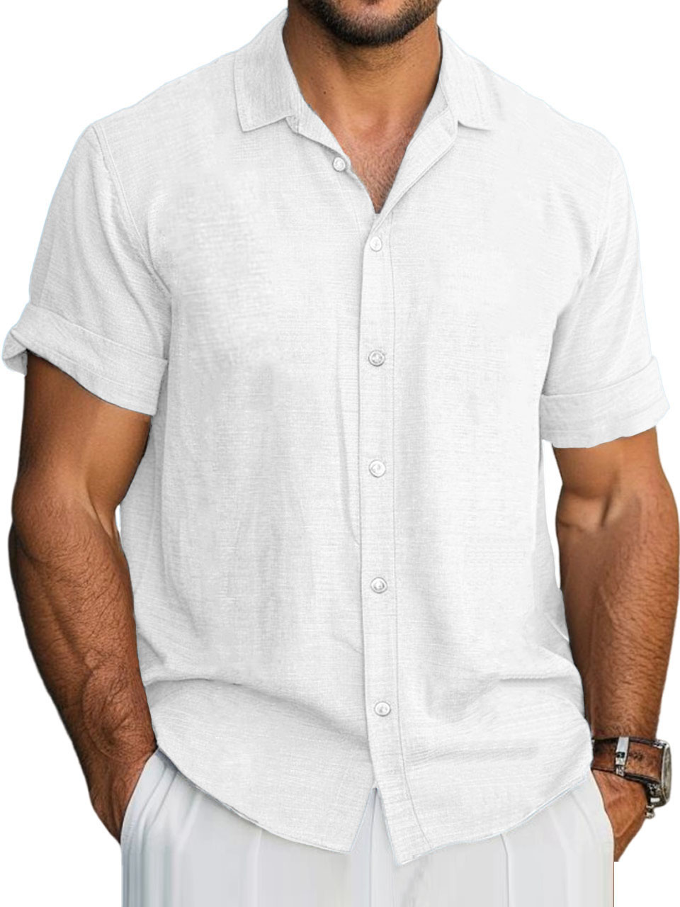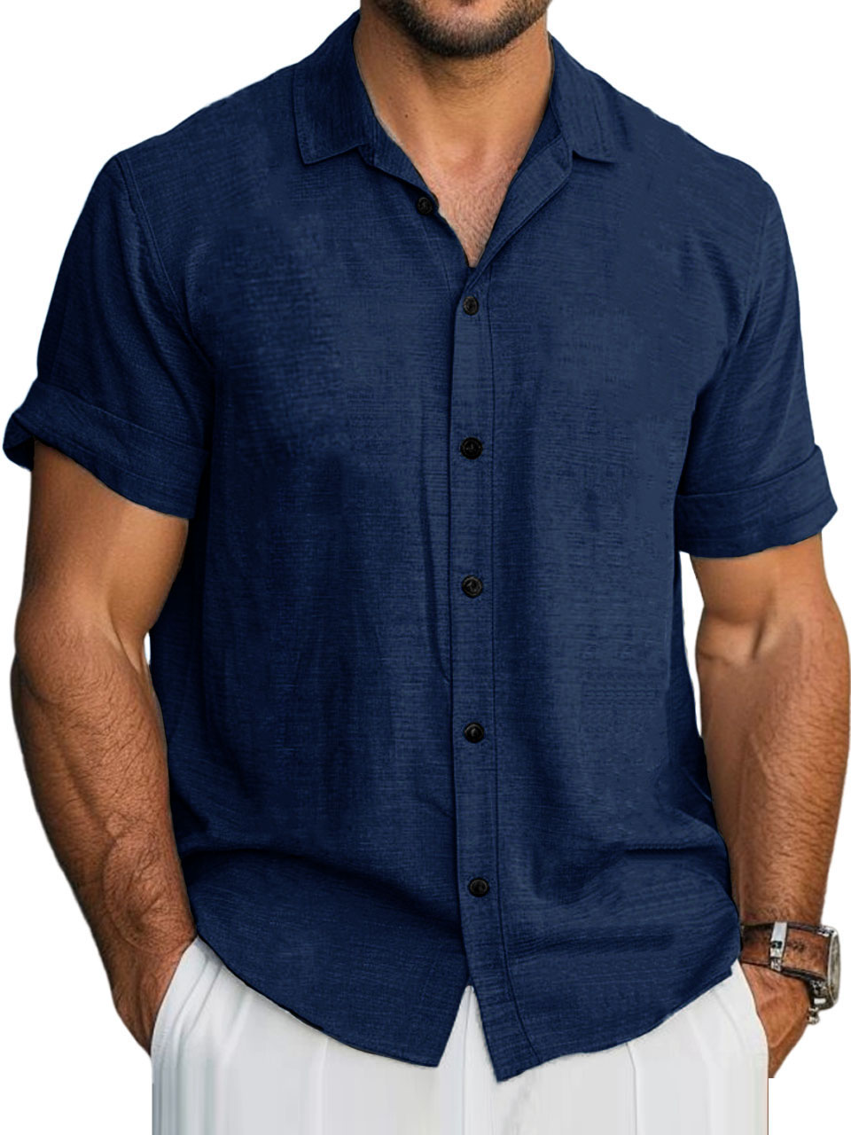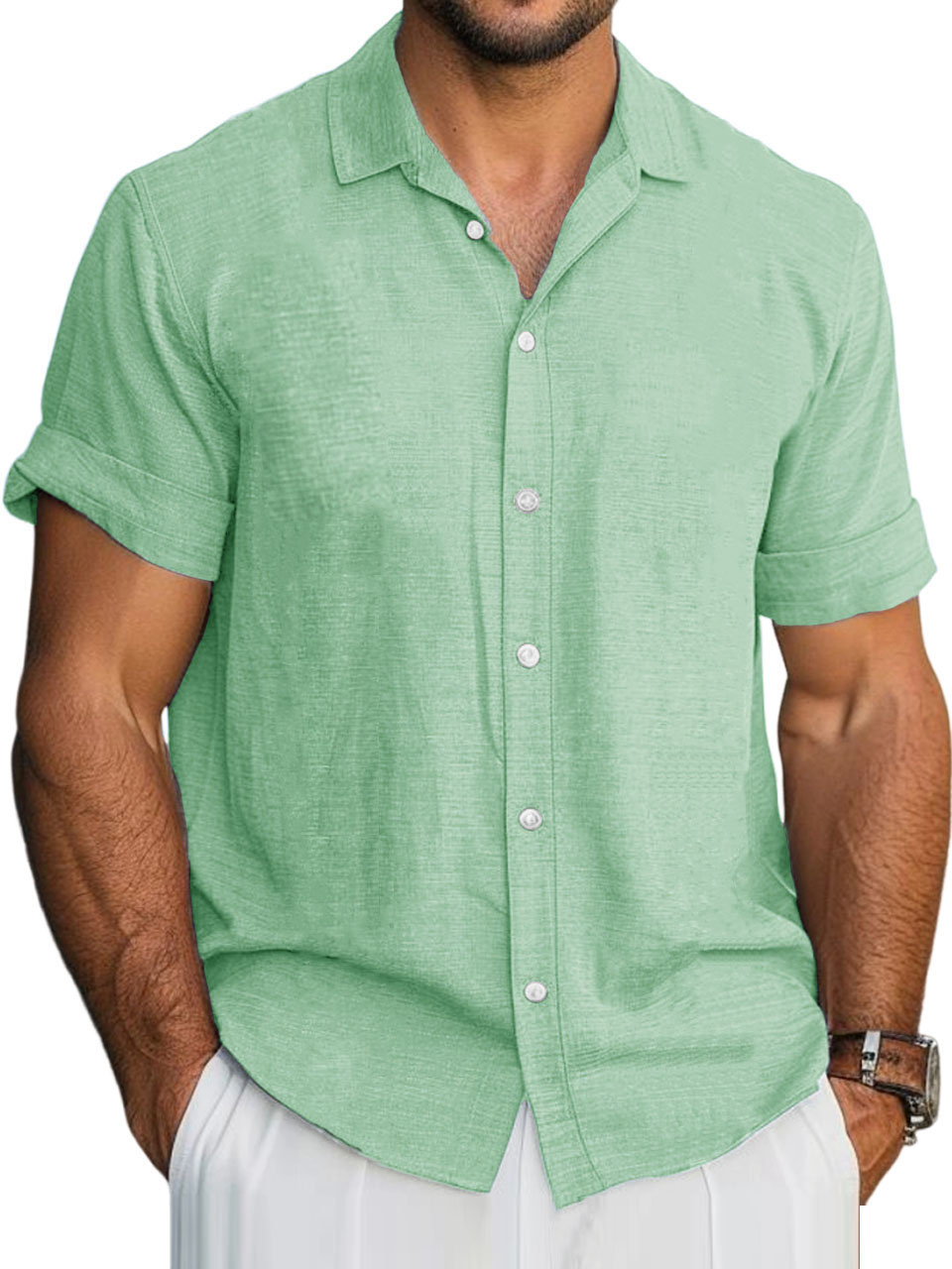 Men's Hawaiian Solid Lapel Short Sleeve Shirt